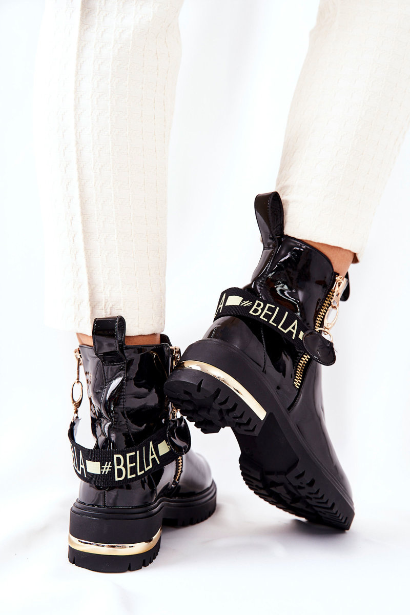 Класичні та елегантні черевики з лакованої екологічної шкіри. Мають дві блискавки. Одним з них є декоративна частина взуття. Ремінець знімний і кріпиться на блискавки. На каблуці також є декоративний елемент. Чоботи будуть чудово виглядати як з брюками, так і зі спідницями. Перегляньте всю нашу колекцію чобіт! Під час вибору розміру зверніться до таблиці розмірів.