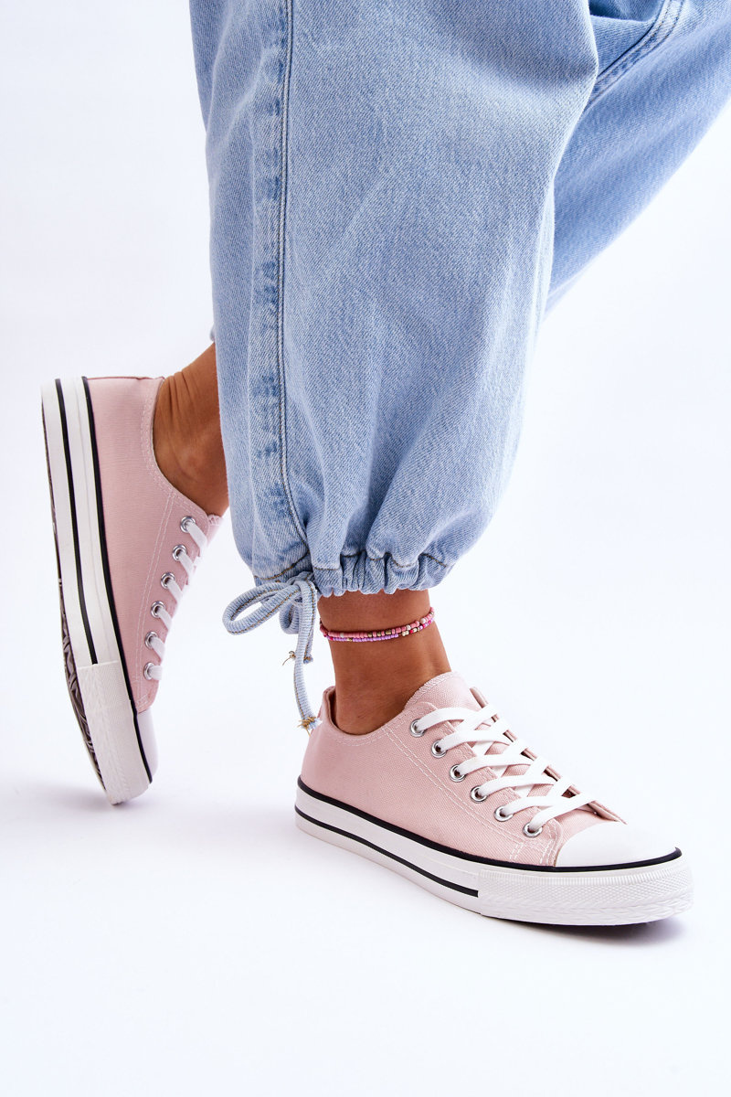 Класичні жіночі кросівки на шнурівці з текстильного матеріалу. Вони мають гумову підошву, яка також не ковзає. Вічна модель, яку варто мати у своєму гардеробі! Ви точно будете носити їх з багатьма нарядами! Ніс був посилений гумовим матеріалом. Зручна, матеріальна устілка забезпечить комфорт під час використання. Вибираючи розмір, зверніться до таблиці розмірів.