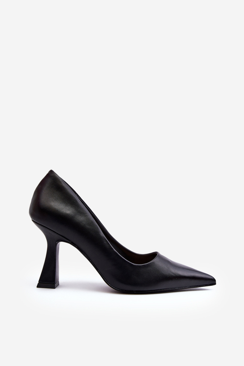 Класичні туфлі з гострим носком на високих підборах чорні Delimena