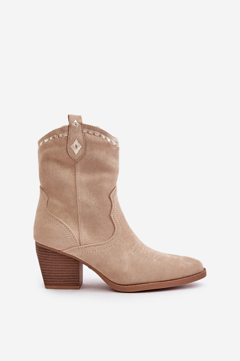 Ковбойські ботильйони на каблуці з еко замші світло-бежевого кольору Narinae