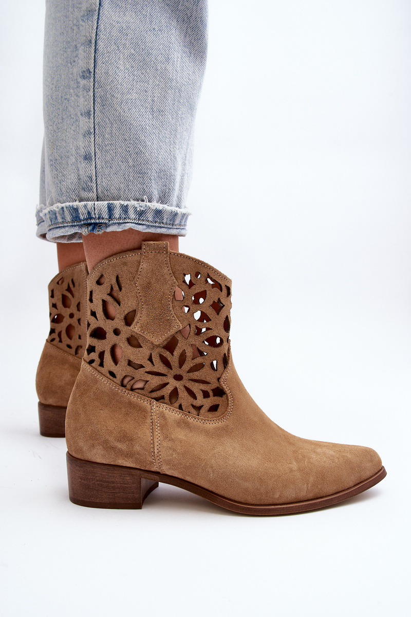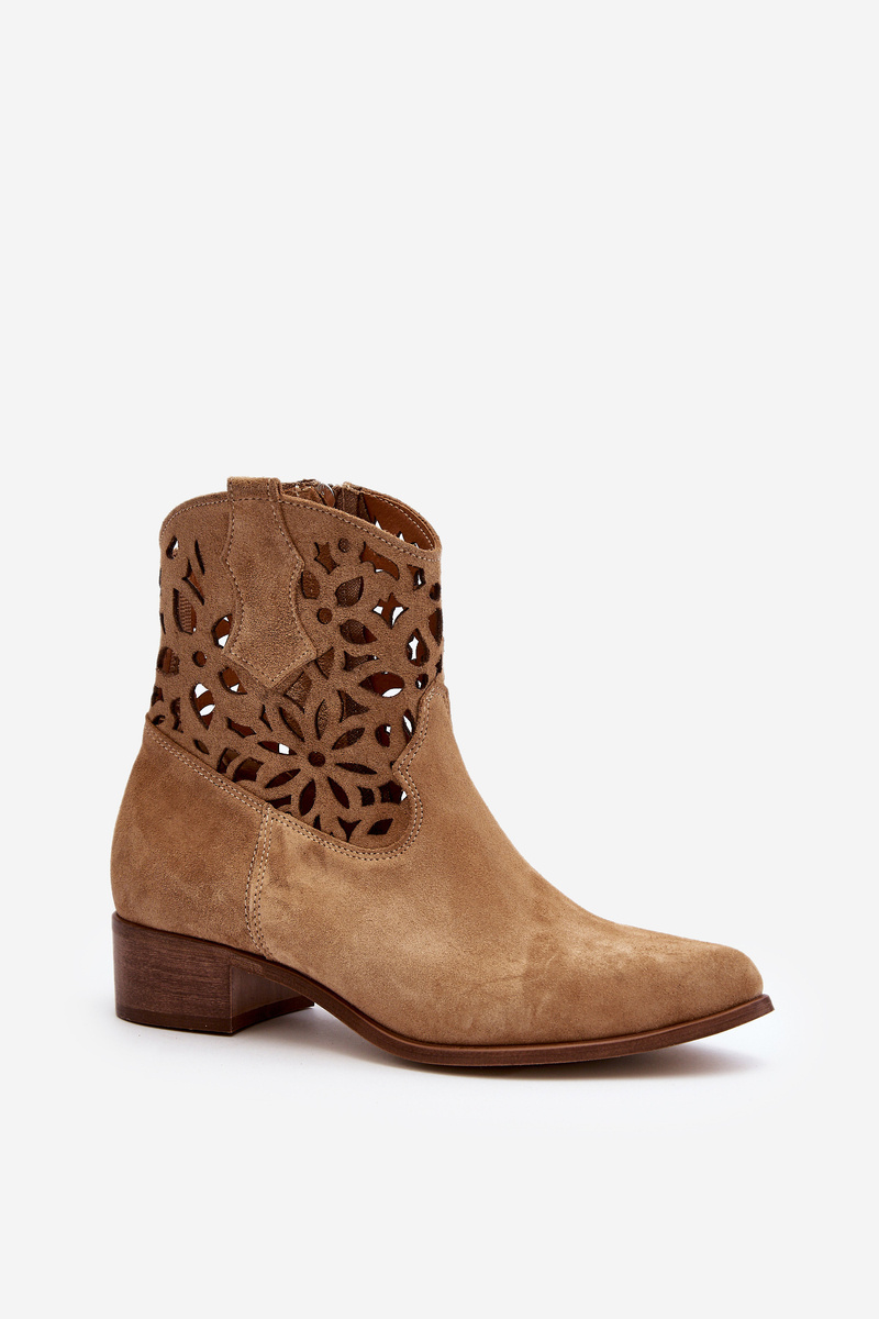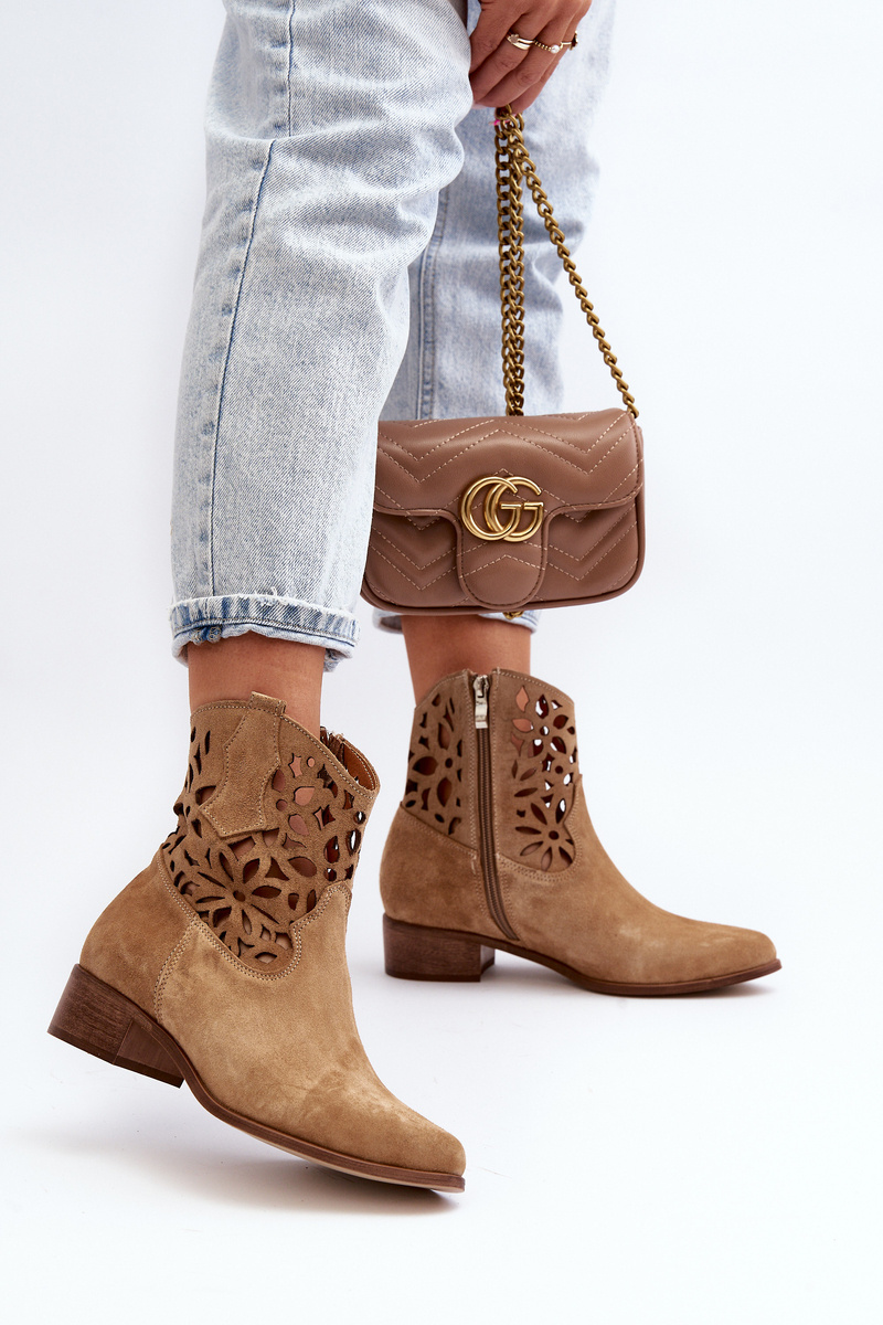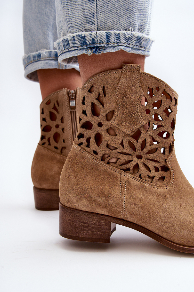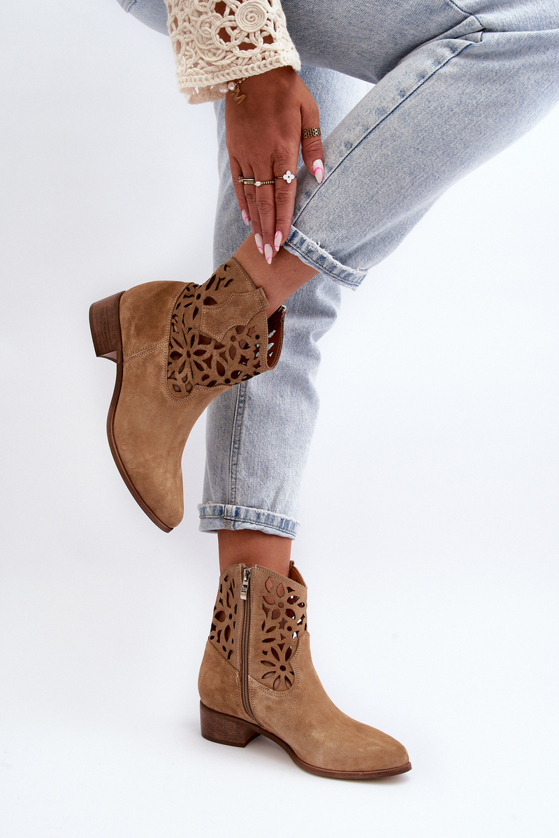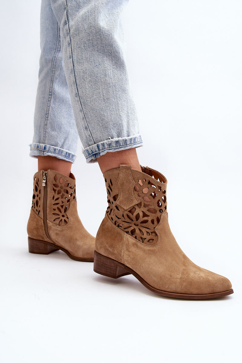 Ковбойські ботильйони на шнурівці на низькому замшевому каблуці Zazoo 3404 Beige