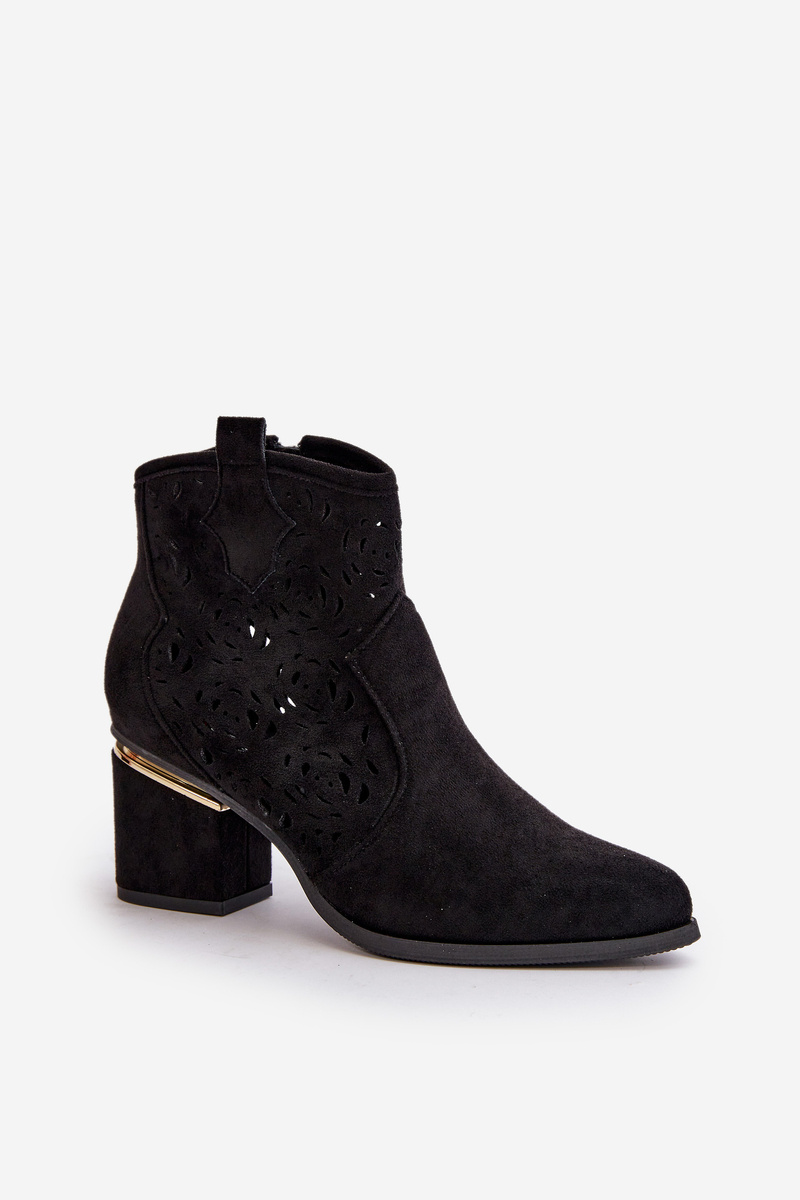 Ковбойські чоботи з еко-замші - ідеальний вибір для будь-якого випадку. Для них характерний перфорований верх, що додає їм легкості та тонкого шарму. Каблук-стовпчик із дзеркальним елементом привертає увагу та додає чобіткам трохи блиску. Застібаються на блискавку, вони забезпечують комфорт і легкість одягання. Загострені пальці підкреслюють їх елегантний вигляд, що робить їх ідеальним доповненням як до повсякденних, так і до більш вишуканих укладок. Обираючи розмір, орієнтуйтеся на таблицю розмірів.