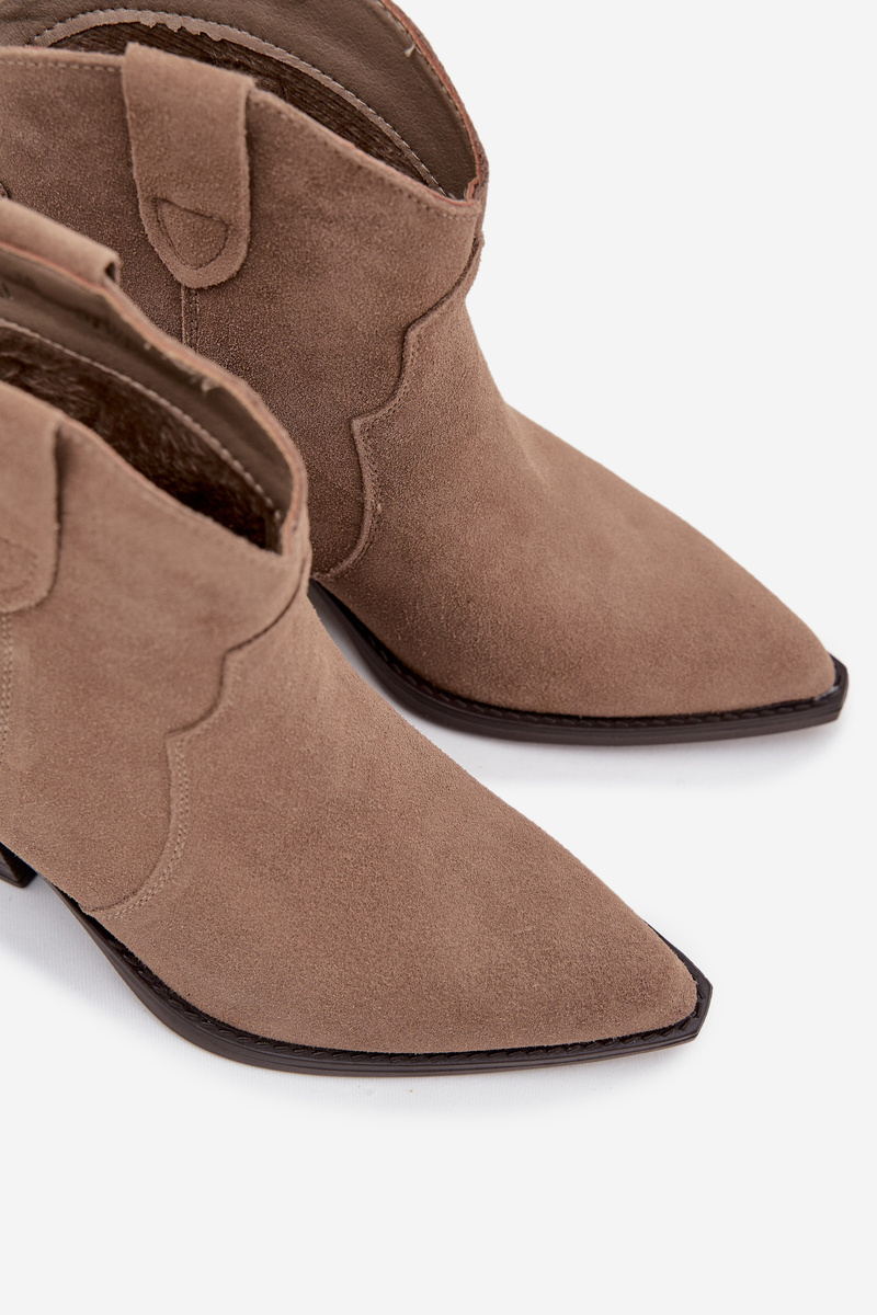 Жіночі ботильйони, виготовлені з натуральної замші, є стильним взуттям у ковбойському стилі, яке додасть характеру будь-якому образу. Модель на язичку забезпечує зручність при знятті та надяганні, а стабільний, злегка зужений каблук візуально витягує силует і надає особливий вигляд. Вузький носик підкреслює жіночий стиль і нагадує класичні ковбойки, тому ботильйони чудово поєднуються як з джинсами, так і з легкими сукнями. Внутрішня частина утеплена ковдрою для взуття, що гарантує тепловий комфорт у холодні дні, роблячи модель не тільки ефектною, але й практичною. Це пропозиція для жінок, які цінують модні деталі та комфорт у повсякденному житті – ботильйони чудово підійдуть для осінньо-зимових образів, додаючи їм оригінальний західний характер. Будь ласка, зверніться до розмірної сітки при виборі розміру.
