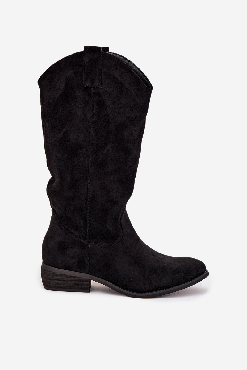 Ковбойські чоботи на низькому каблуку з еко замшу чорні Cherrie