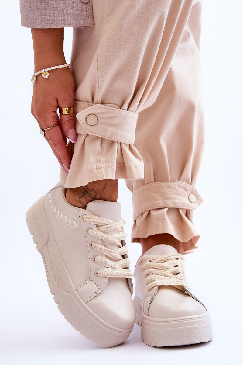 Комфортне жіноче спортивне взуття на платформі бежевого кольору Devan