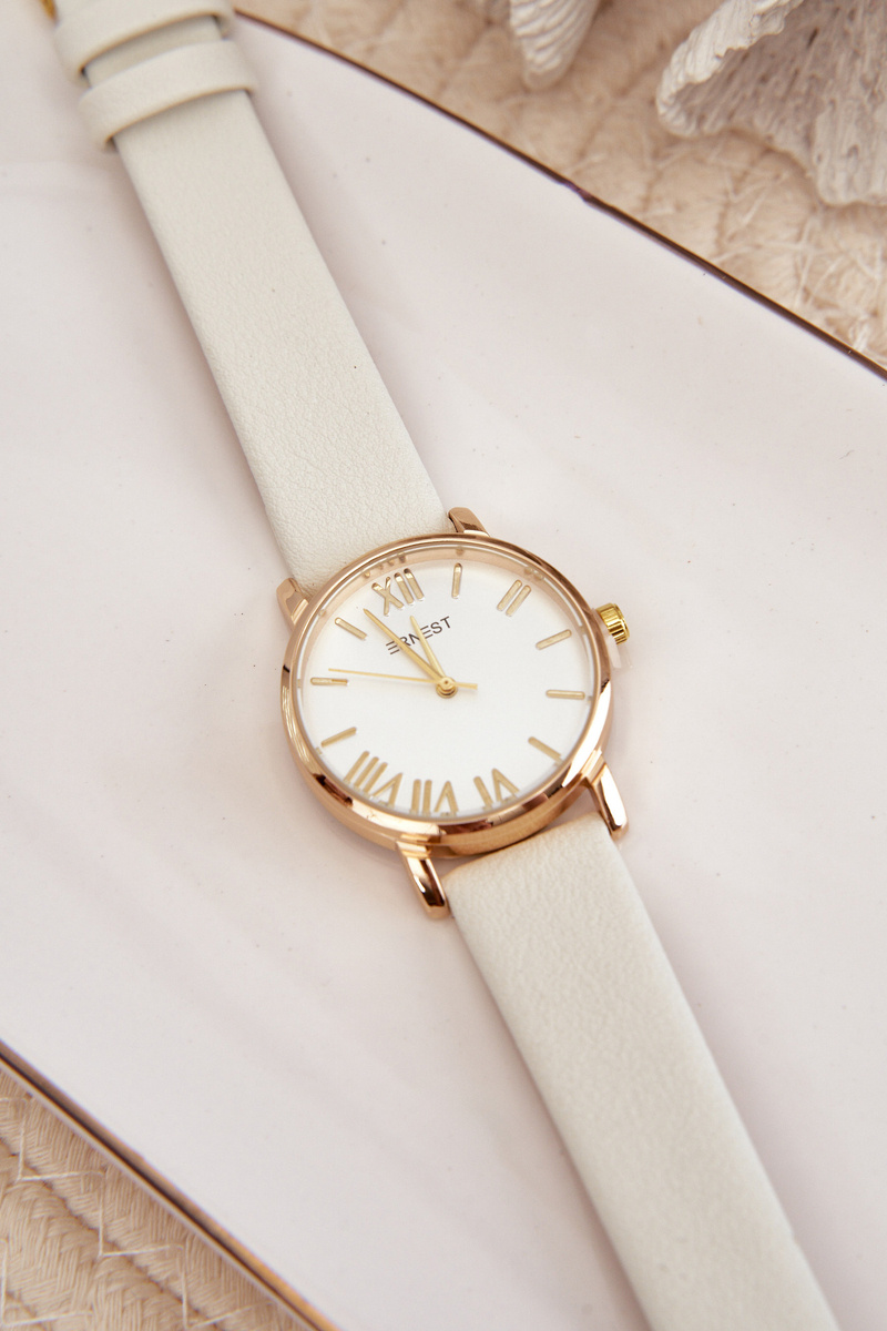 Жіночий годинник Ernest. Ремінець виготовлений з екошкіри. Проста, але виняткова форма цього годинника робить його ідеальним аксесуаром як для повсякденних, так і для офіційних випадків. Завдяки своїй універсальності та елегантності він завжди стане вишуканим доповненням до будь-якого вбрання.