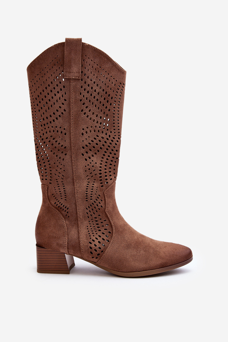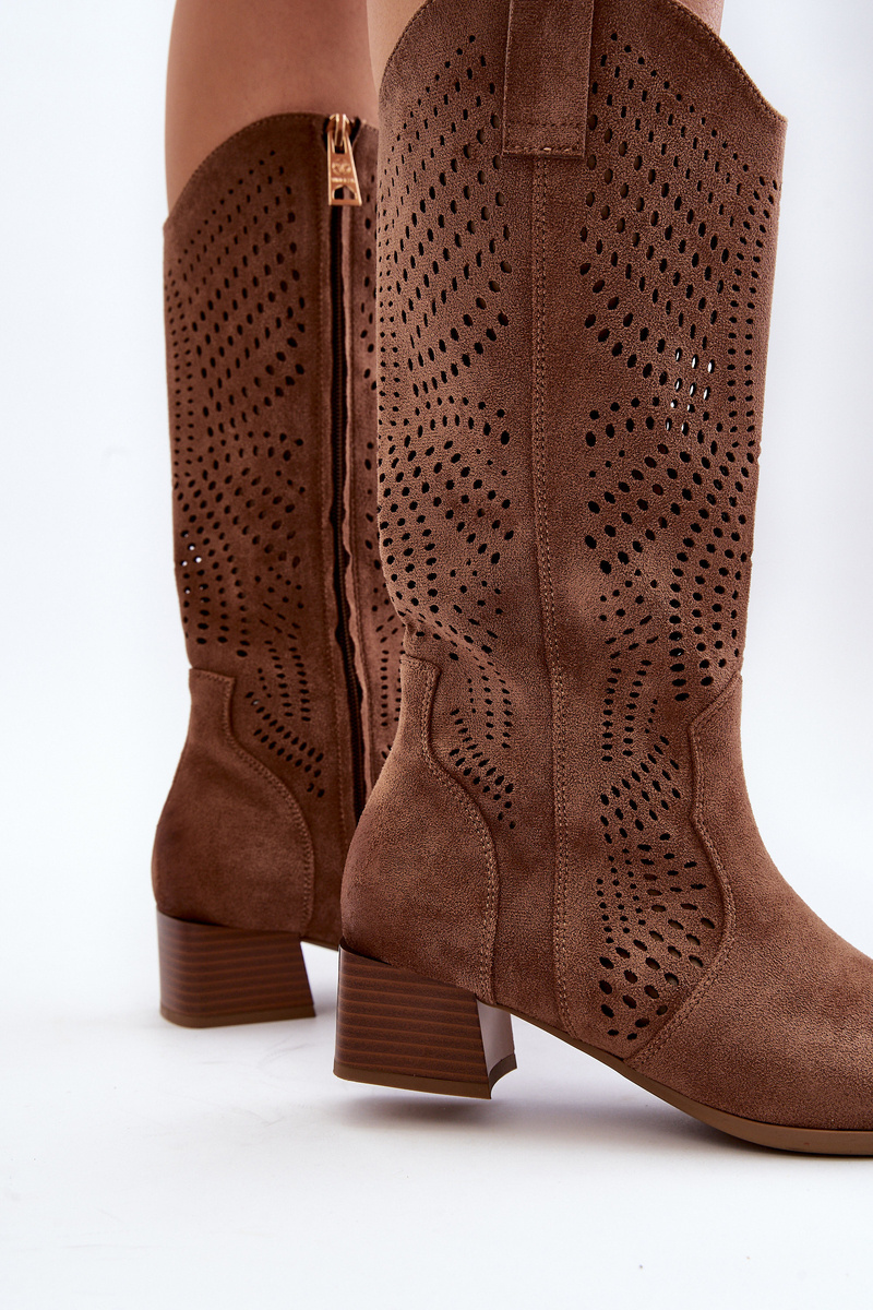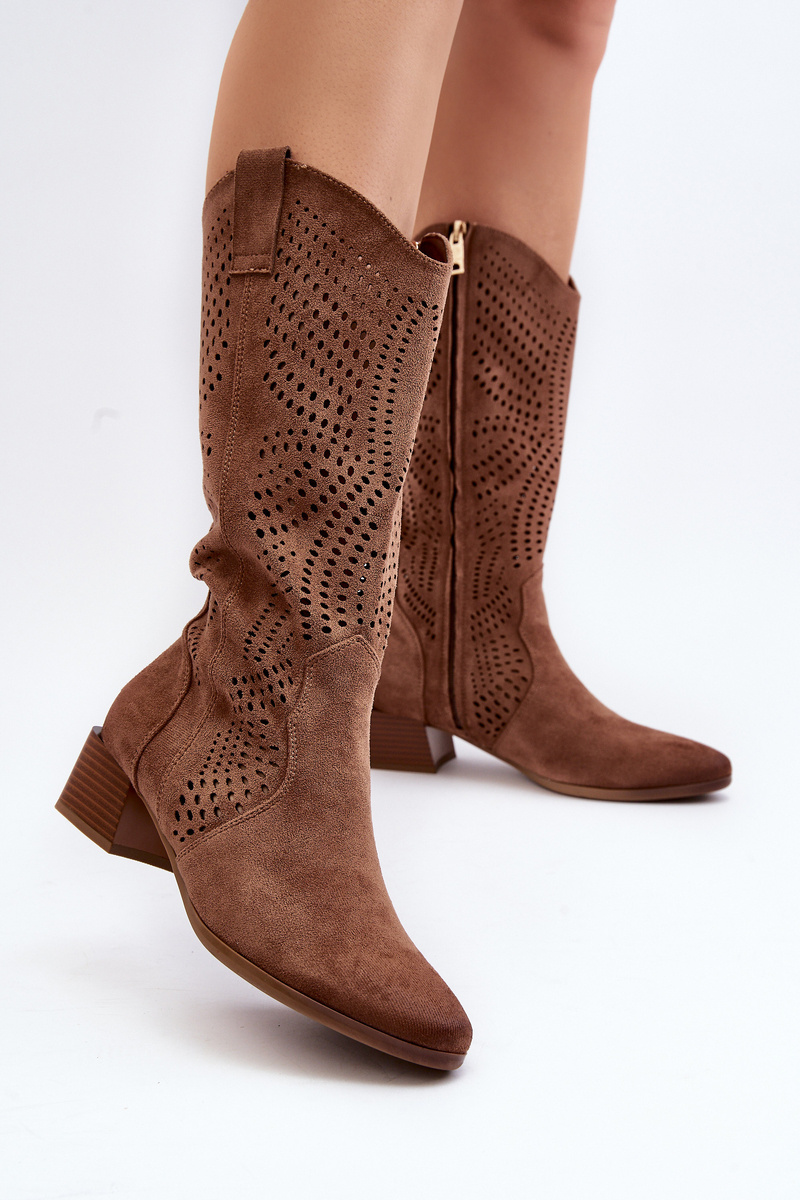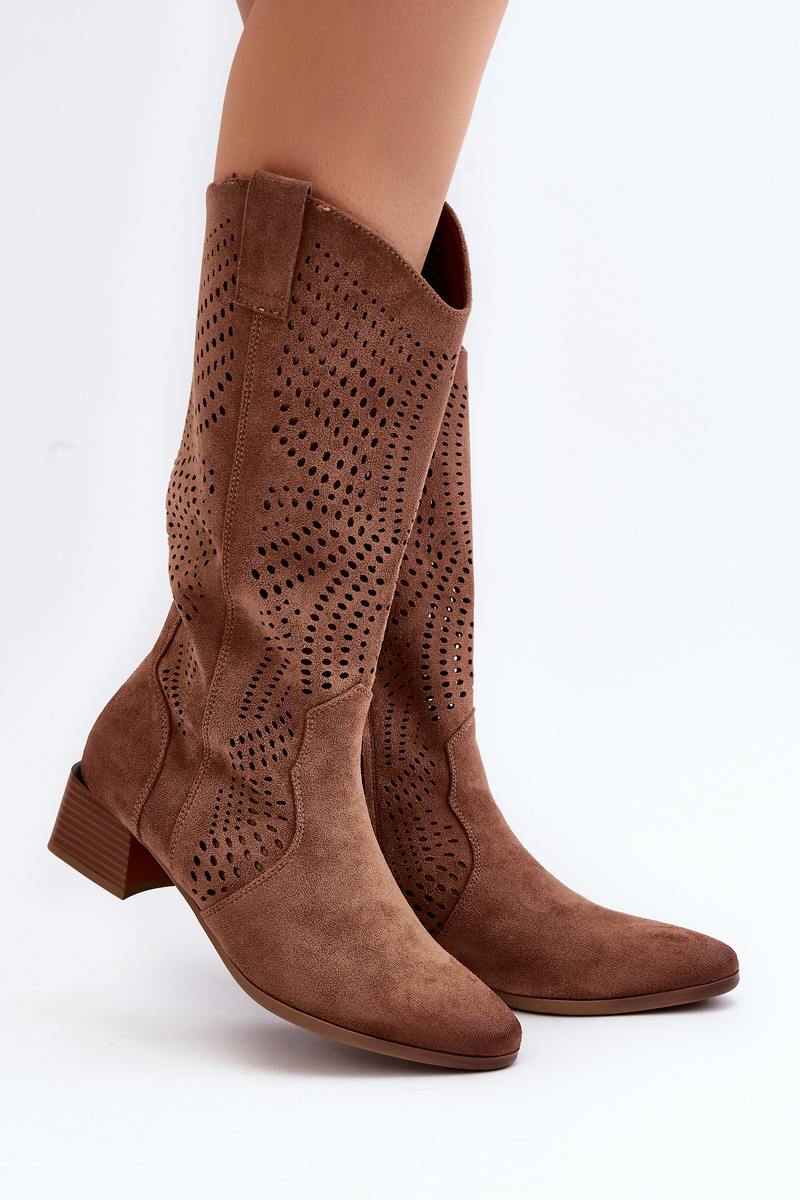 Коричневі ажурні чоботи Walea на низькому каблуці