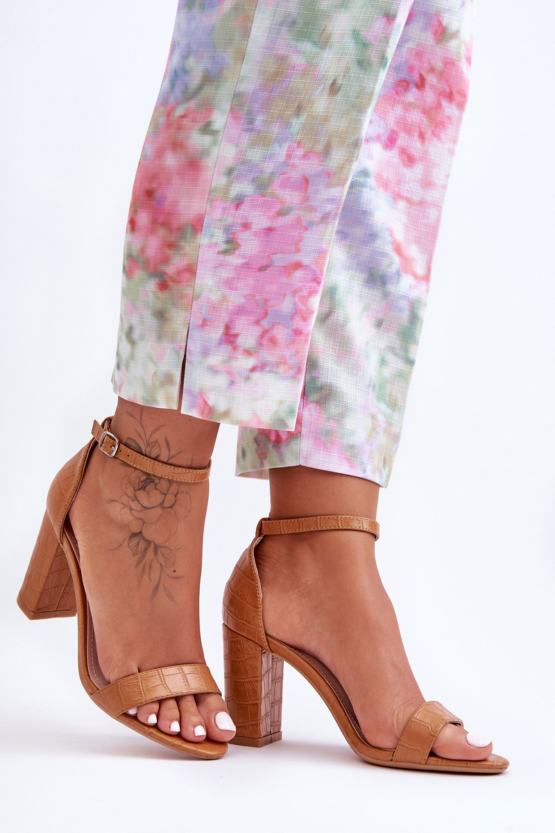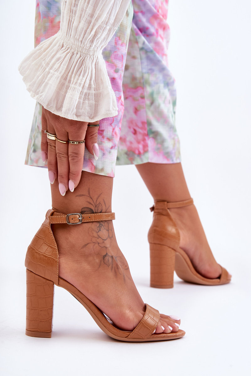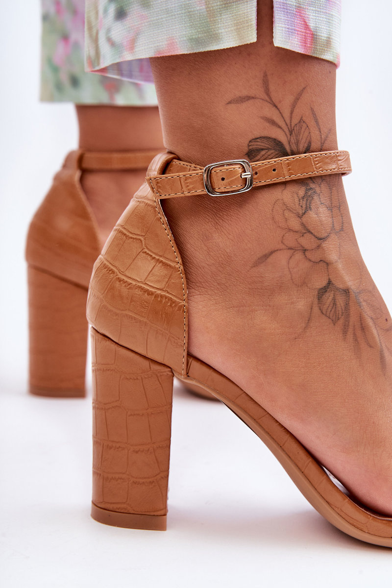 Коричневі босоніжки Hacia на підборах зі змійовим візерунком