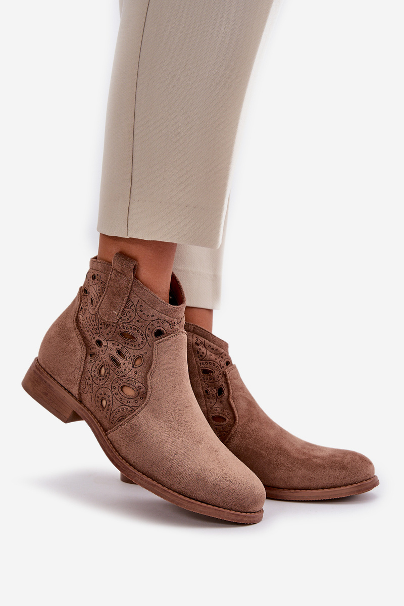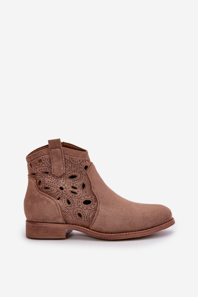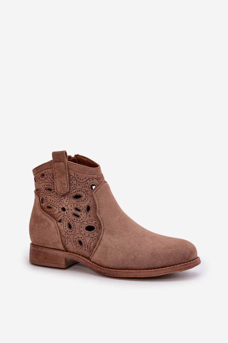 Жіночі ботильйони з еко замші - ідеальний вибір для весняних днів. Перфорований верх надає їм вишуканості. Плоский каблук забезпечує стабільність і комфорт під час використання. Застібаються на блискавку, вони полегшують одягання та знімання чобіт, а закруглені носки додають елегантності. Ці модні черевики стануть відмінним доповненням вашого весняного гардеробу! Ви точно повинні їх мати! Обираючи розмір, орієнтуйтеся на таблицю розмірів.