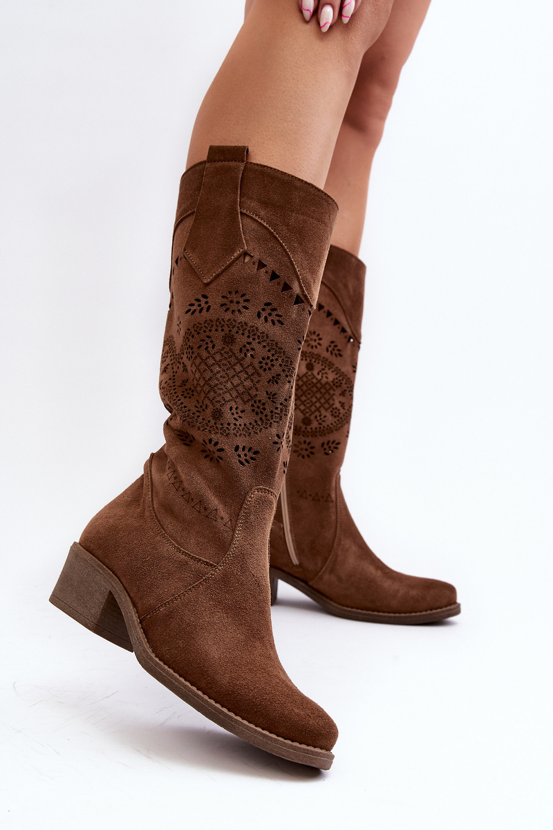 Коричневі замшеві черевики на низьких підборах Zazoo 4043 зі шнурівкою