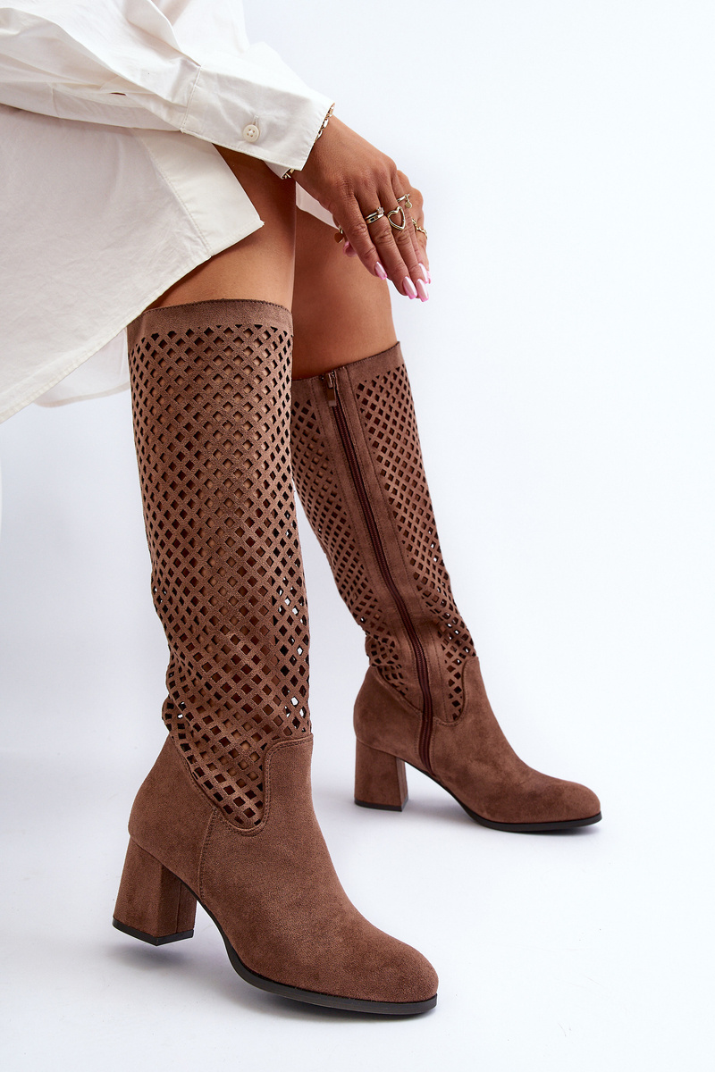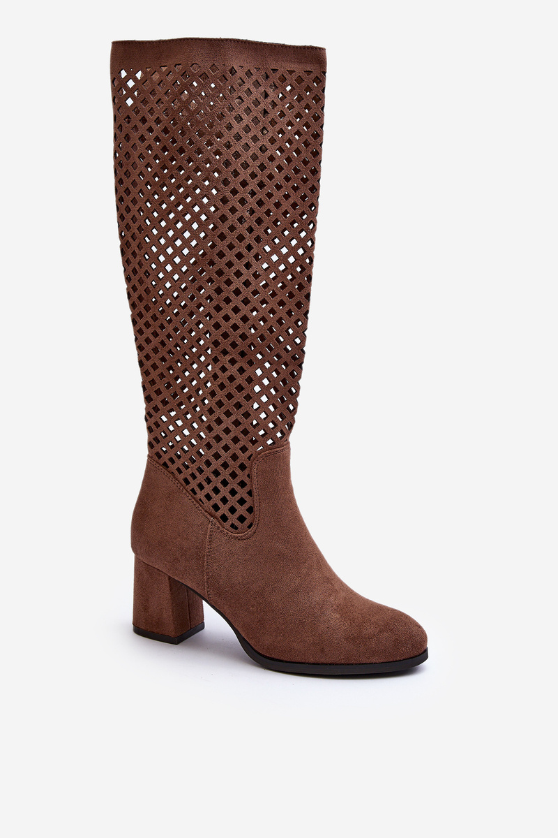 Коричневі замшеві чоботи на високих підборах на шнурівці Jolenna