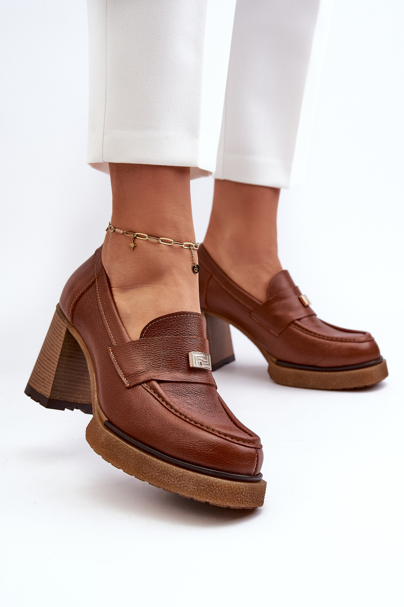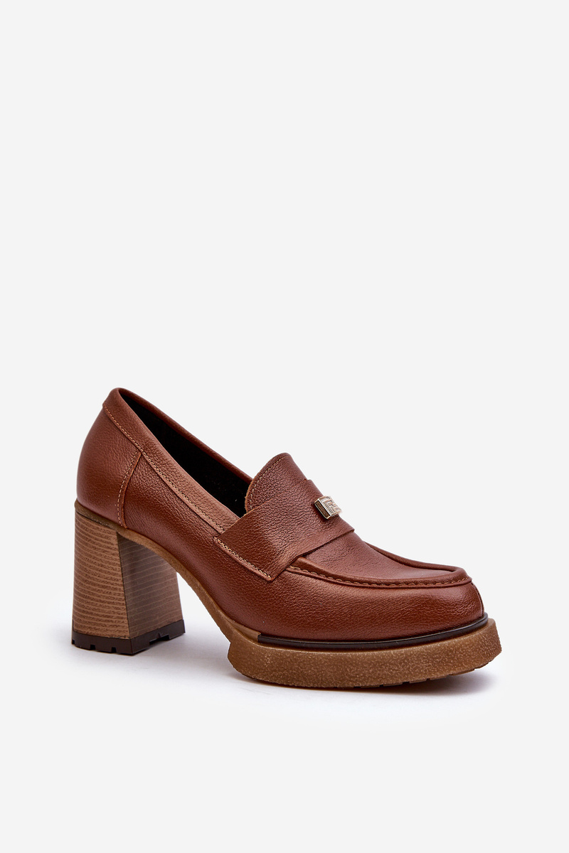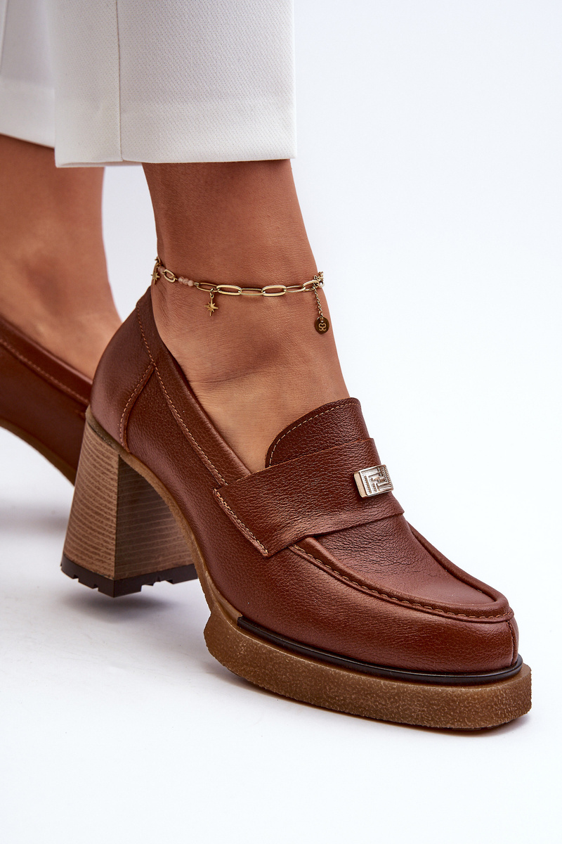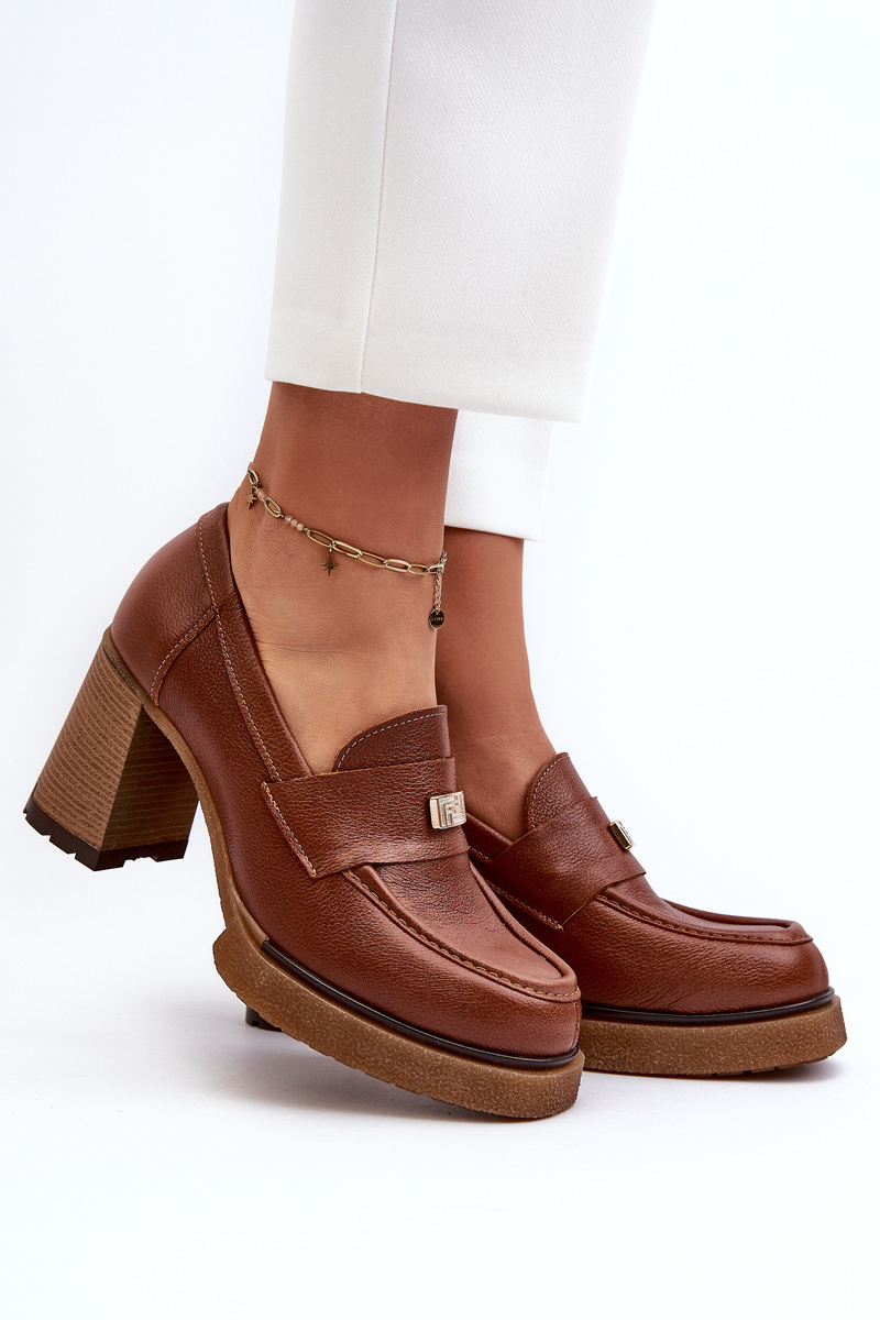 Коричневі шкіряні туфлі на високих підборах Zazoo 20169