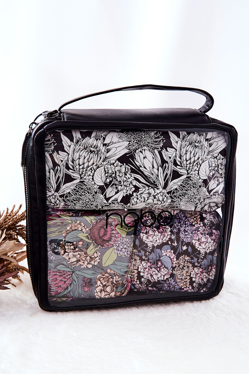 Косметичка виготовлена з екологічної шкіри та прозорого пластику. Відділення закривається на блискавку. Додатково в сумці три косметички меншого розміру - дві квадратної та одна прямокутна. Чудова модель 4 в 1, яку можна використовувати різними способами. Косметичні сумки меншого розміру ідеально помістяться в сумки через плече, щоб найнеобхідніша косметика завжди була з вами! Вони також мають одне відділення на блискавці з логотипом бренду NOBO.
