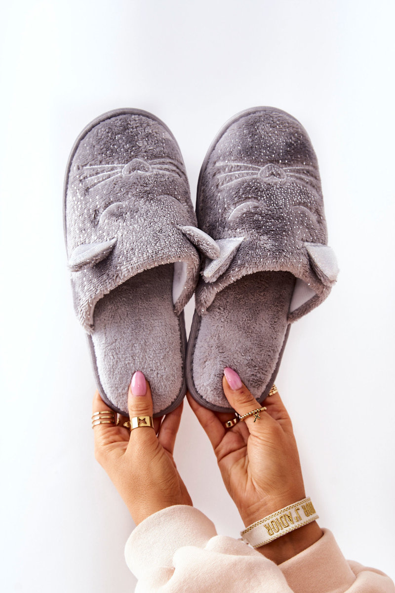 Котячі тапочки з блискучими вушками сірі Kaisy
