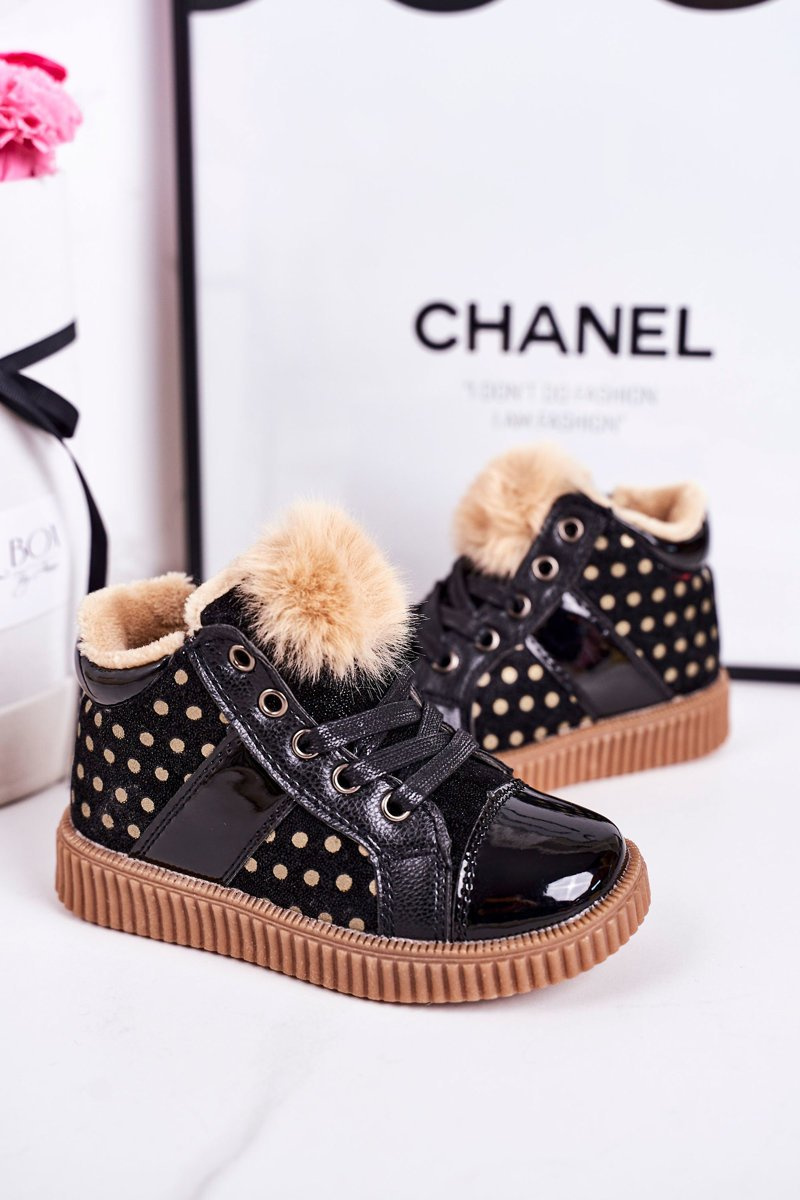 Кросівки дитячі утеплені в горошок Чорні Анастасія