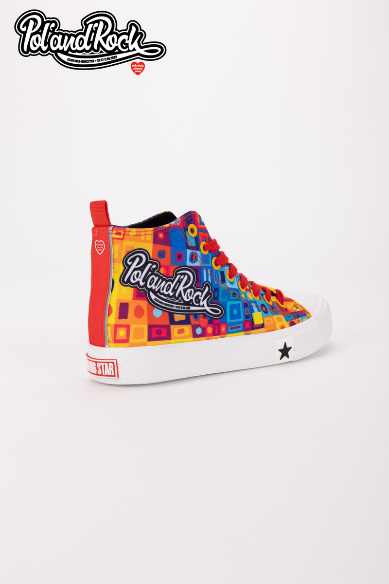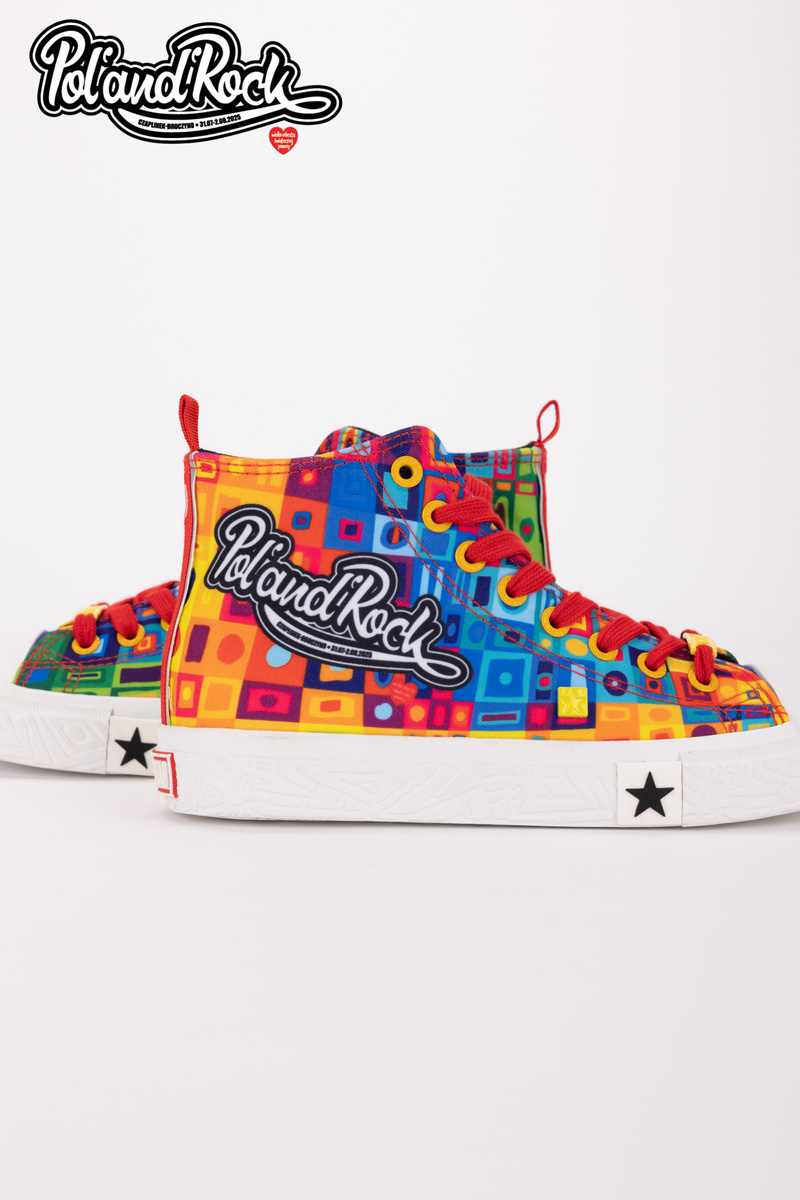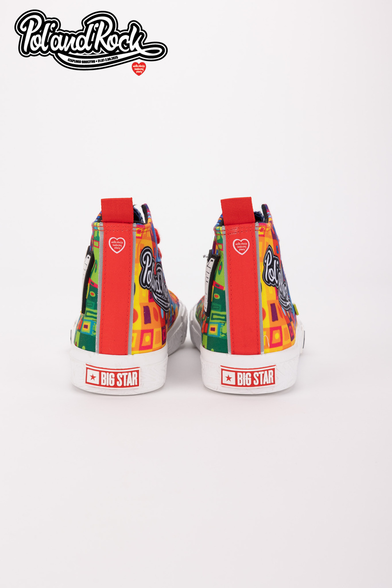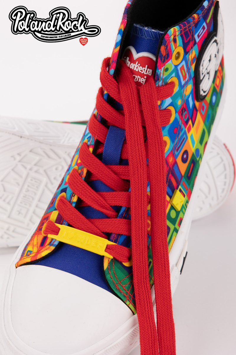 МОДЕЛЬ МОЗАЙКА Унікальний вигляд Модель цих черевиків була розроблена командою графіків Юрка Овсяка. Це справжній вибух кольорів і символів. Зелений, синій і червоний верх покритий художніми візерунками, які нагадують фестивальне графіті, спонтанність і радість. На задній частині черевиків знаходиться червона стрічка з білим серцем - тонкий, але виразний акцент, який символізує любов до музики та людей. Саме ці цінності є основою фестивалю Poland’and’Rock і були перенесені на кожен сантиметр цієї унікальної моделі. Стійкість і комфорт Виготовлені з високоякісних матеріалів, вони забезпечують комфорт під час носіння протягом усього дня. Міцна гумова підошва гарантує відмінне зчеплення та захист стопи на нерівній місцевості, а високоякісні матеріали забезпечують довговічність і стійкість до пошкоджень. Кросівки легкі, зручні та ідеальні для танців під сценою, прогулянок по кемпінгу або просто повсякденного носіння з ноткою фестивального розслаблення. Обмежена версія Унікальність кросівок Big Star Shoes робить їх справжньою рідкістю для колекціонерів та людей, які слідкують за останніми тенденціями. Спогад Ці кросівки допоможуть зберегти пам'ять про 31-й випуск фестивалю Pol’and’Rock на довгий час. Фотографія з фестивалю з вашою половинкою або друзями? Пам'ятайте, що ви можете об'єднати зусилля і вибрати узгоджене взуття для всіх учасників. Будь ласка, зверніться до розмірної сітки при виборі розміру.