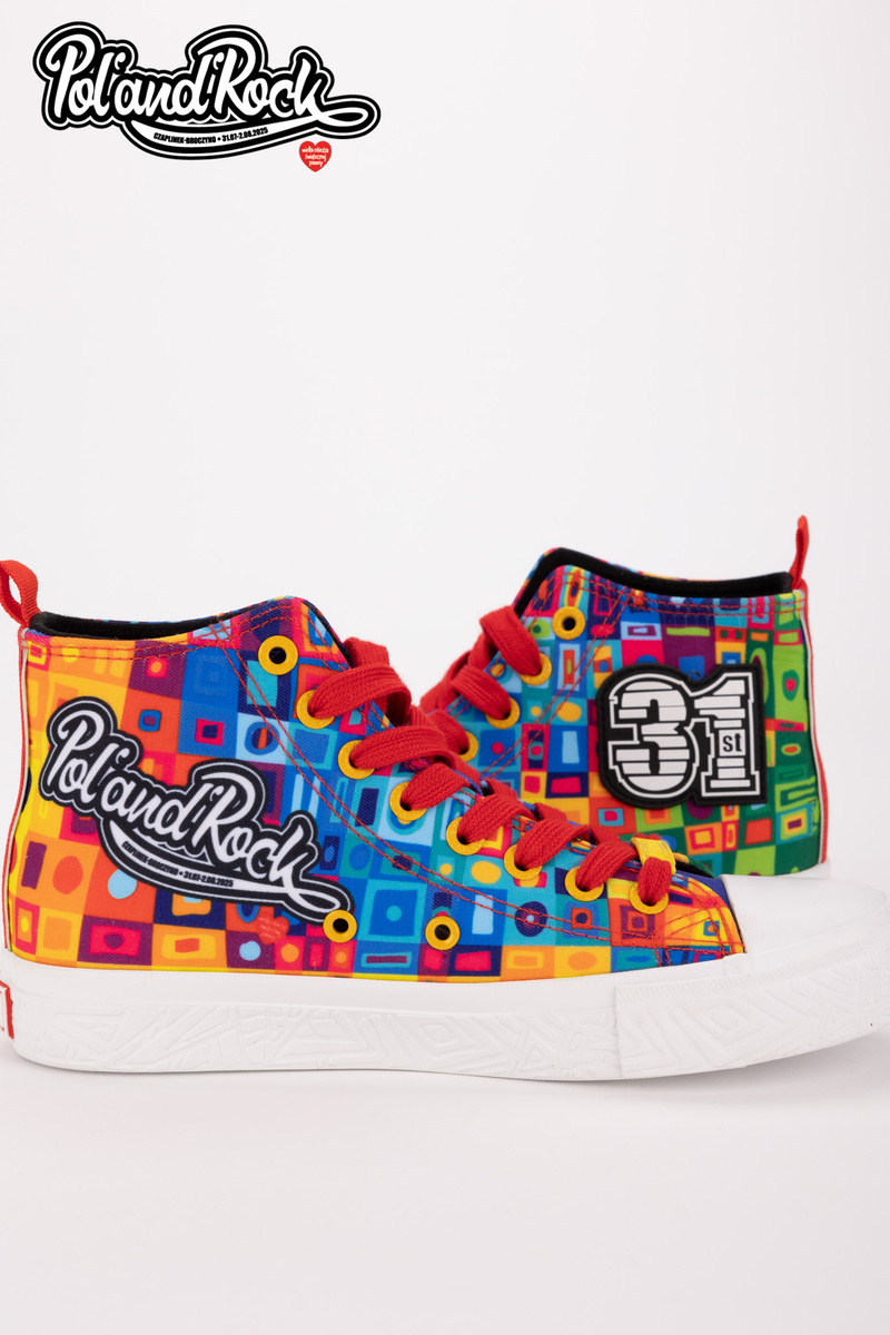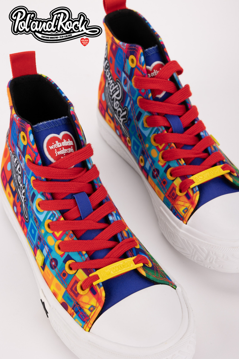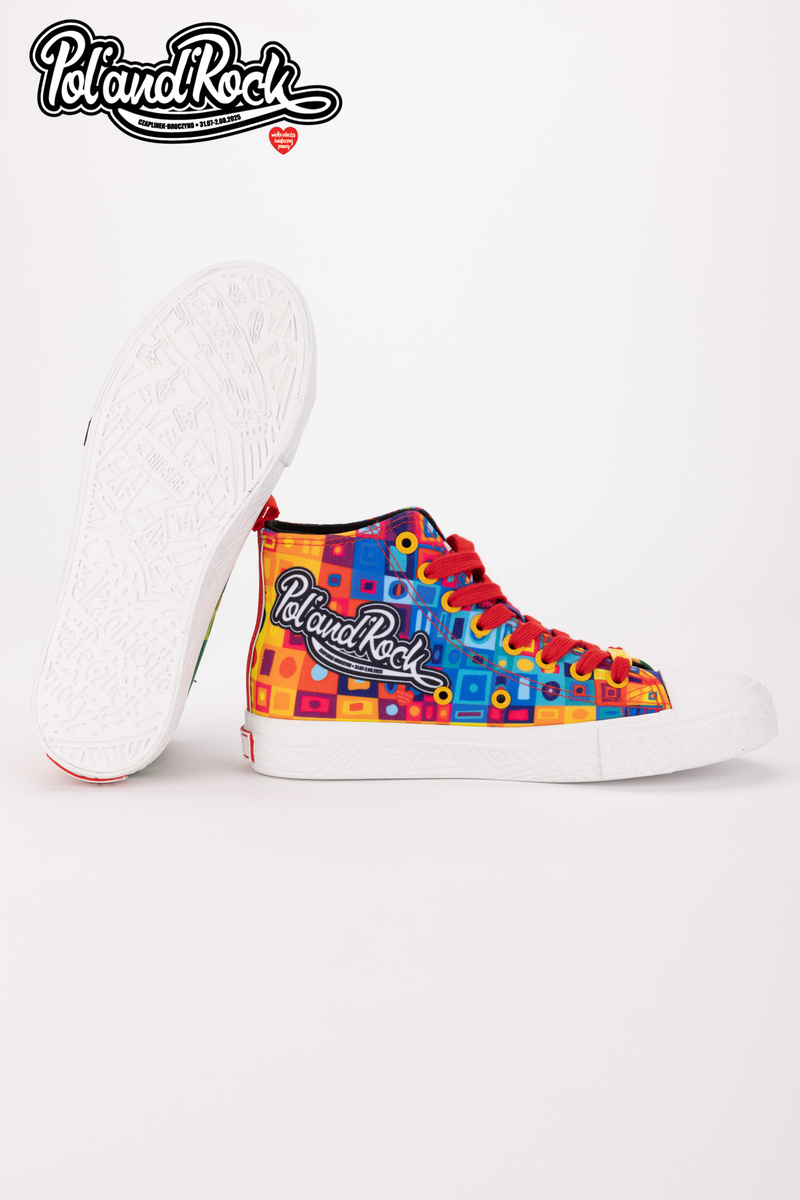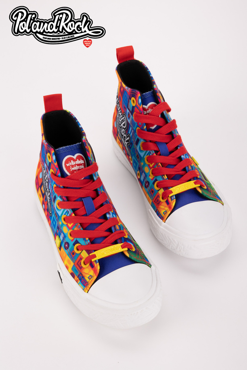 МОДЕЛЬ МОЗАЙКА Унікальний вигляд Модель цих черевиків була розроблена командою графіків Юрка Овсяка. Це справжній вибух кольорів і символів. Зелений, синій і червоний верх покритий художніми візерунками, які нагадують фестивальне графіті, спонтанність і радість. На задній частині черевиків знаходиться червона стрічка з білим серцем - тонкий, але виразний акцент, який символізує любов до музики та людей. Саме ці цінності є основою фестивалю Poland’and’Rock і були перенесені на кожен сантиметр цієї унікальної моделі. Стійкість і комфорт Виготовлені з високоякісних матеріалів, вони забезпечують комфорт під час носіння протягом усього дня. Міцна гумова підошва гарантує відмінне зчеплення та захист стопи на нерівній місцевості, а високоякісні матеріали забезпечують довговічність і стійкість до пошкоджень. Кросівки легкі, зручні та ідеальні для танців під сценою, прогулянок по кемпінгу або просто повсякденного носіння з ноткою фестивального розслаблення. Обмежена версія Унікальність кросівок Big Star Shoes робить їх справжньою рідкістю для колекціонерів та людей, які слідкують за останніми тенденціями. Спогад Ці кросівки допоможуть зберегти пам'ять про 31-й випуск фестивалю Pol’and’Rock на довгий час. Фотографія з фестивалю з вашою половинкою або друзями? Пам'ятайте, що ви можете об'єднати зусилля і вибрати узгоджене взуття для всіх учасників. Будь ласка, зверніться до розмірної сітки при виборі розміру.