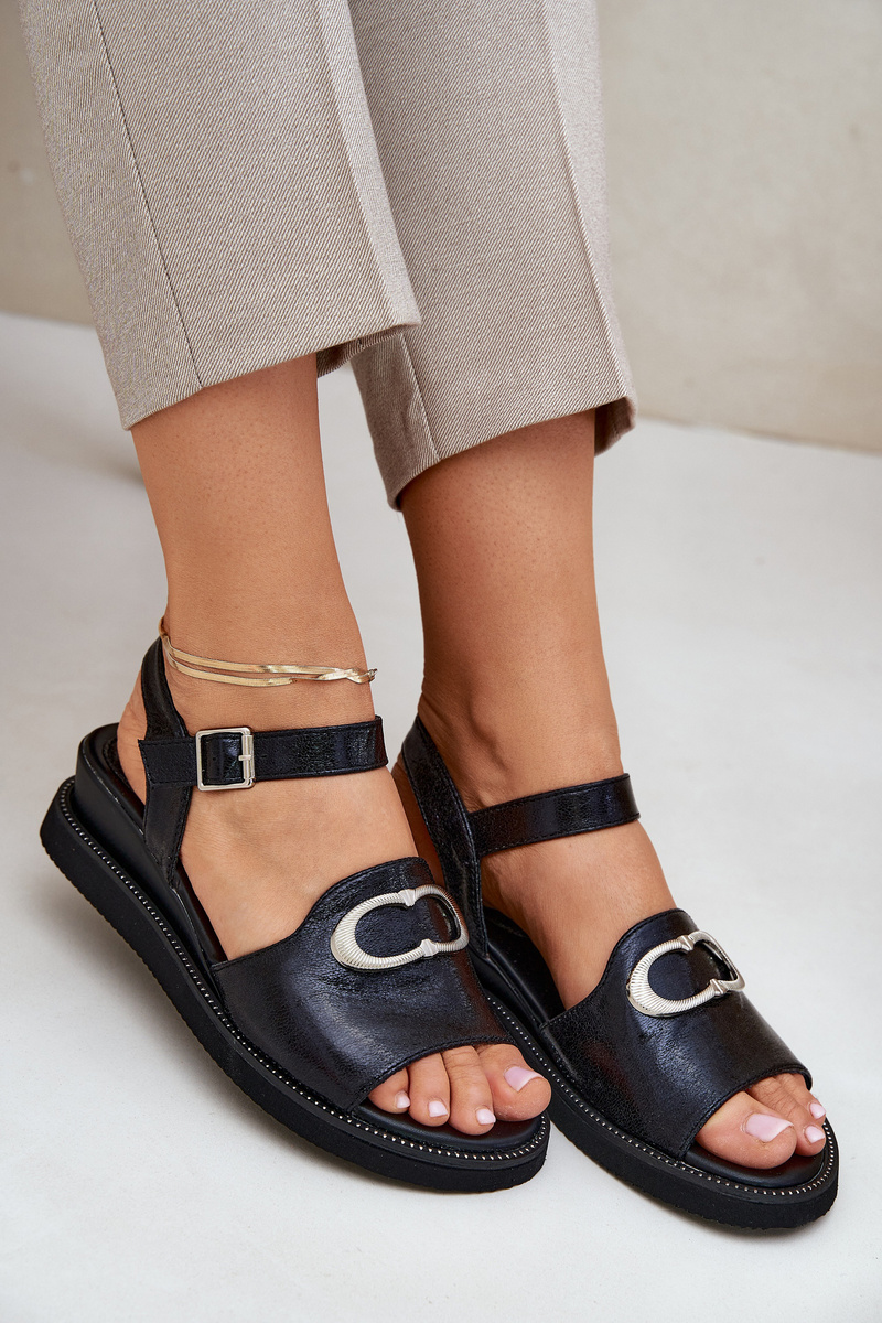 Лакировані Жіночі Сандалі На Платформі З Декором Чорні Salianes