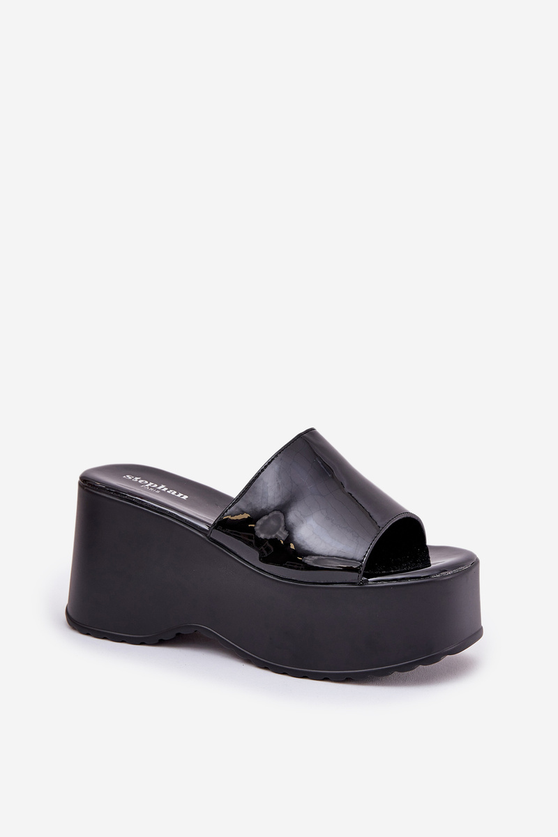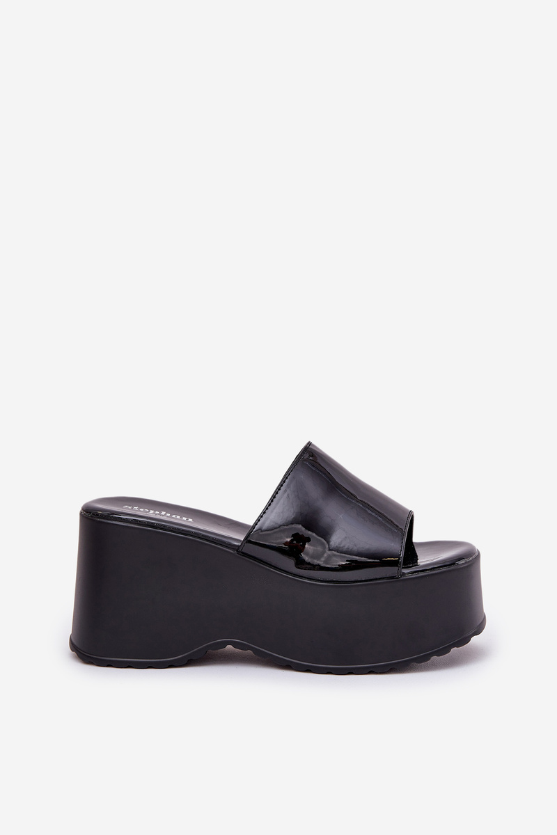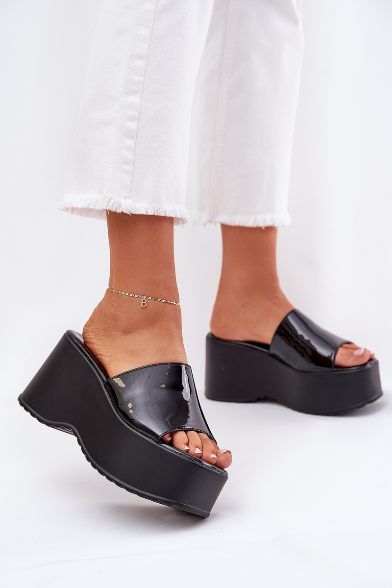 Лаковані Жіночі Сандалі На Платформі І Каблуці Чорні Nellevia