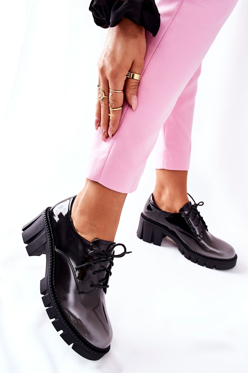 Взуття виготовлене з високоякісної лакованої екошкіри. М'яка натуральна шкіряна устілка гарантує комфорт. Взуття має гумову підошву. Прив'язка дає можливість пристосувати їх до своїх потреб. Низький міцний каблук забезпечує комфорт. Обираючи розмір, зверніться до таблиці розмірів.