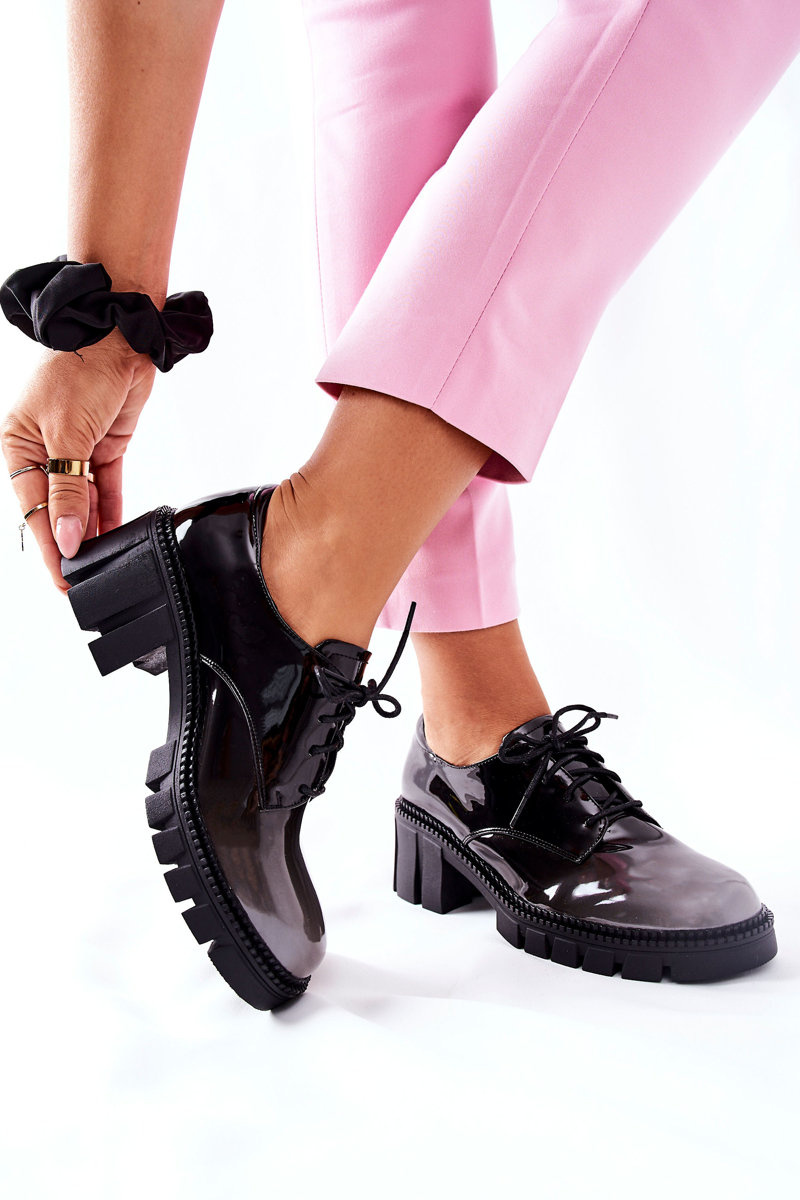 Лаковані багатоярусні туфлі чорно-сірі Mosy