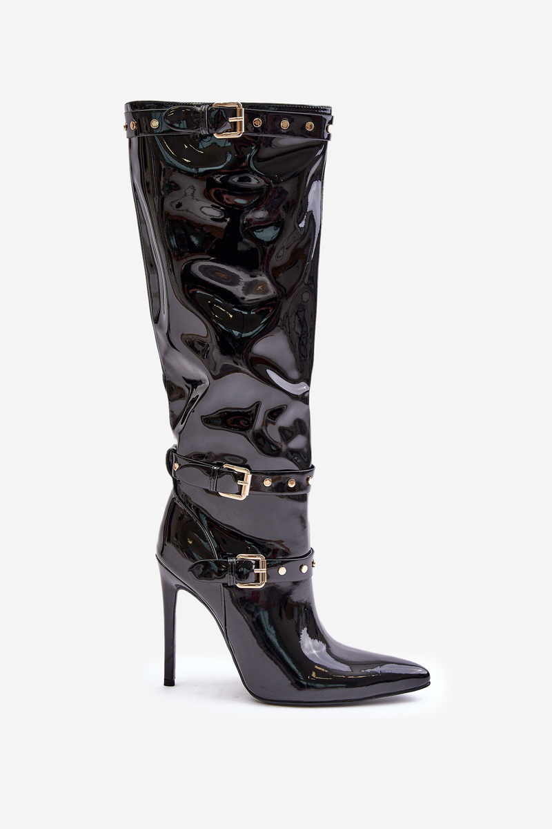 Елегантні жіночі чоботи на шпильці з лакованої екошкіри вражають стильним дизайном і ретельною обробкою. Модель застібається на блискавку, з гострими носами, на тонкій шпильці, ідеально витягуючи силует і додаючи вишуканості. Стрілка, прикрашена ремінцями та пряжками, надає їм унікальний характер, створюючи модний і характерний акцент. Ідеально підходять для прохолодних днів, ці черевики ідеально підходять для елегантних образів, привертають увагу і додають виразності. Обираючи розмір, орієнтуйтеся на таблицю розмірів.