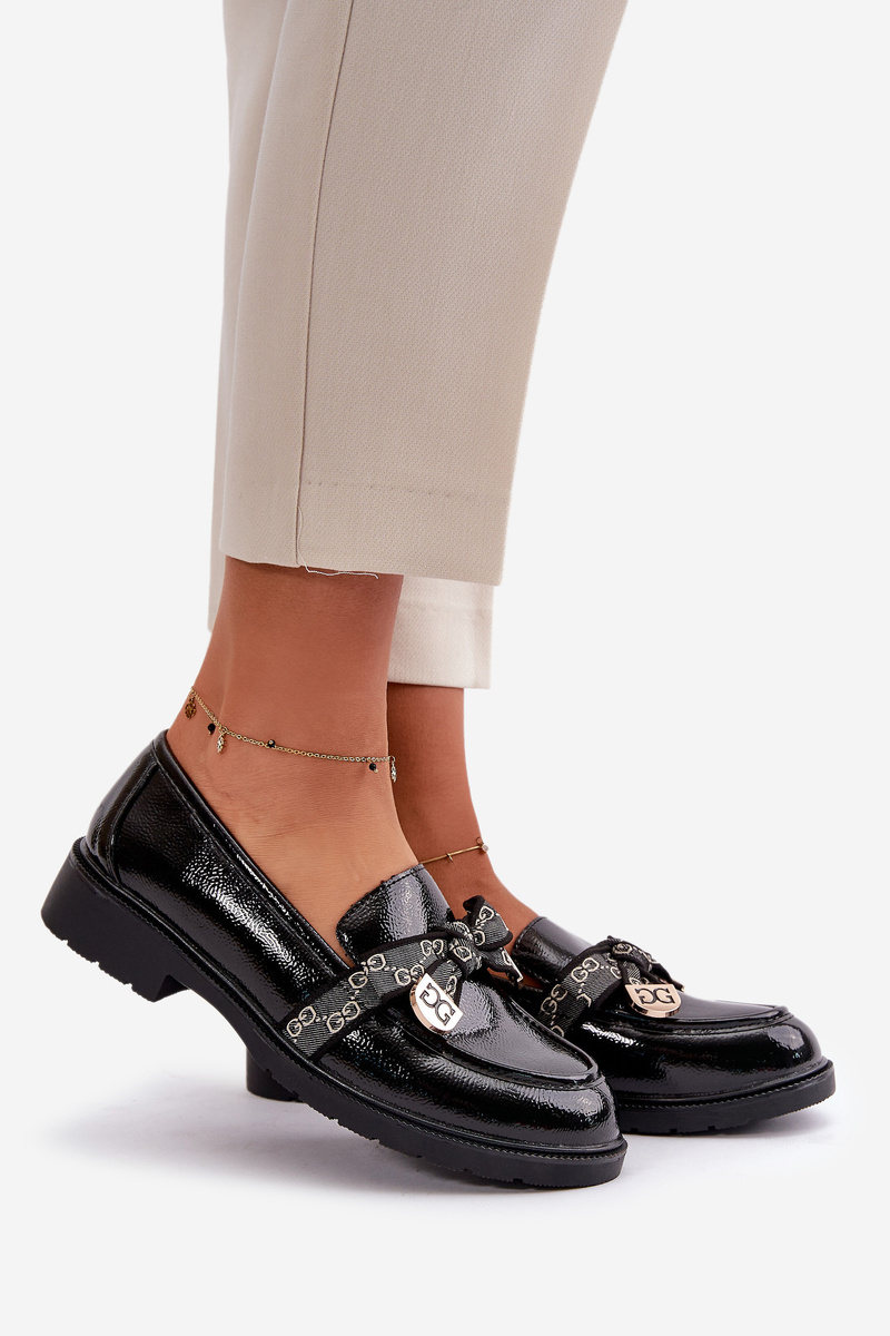 Лаковані жіночі мокасини з бантом чорні S.Barski HY42-331A