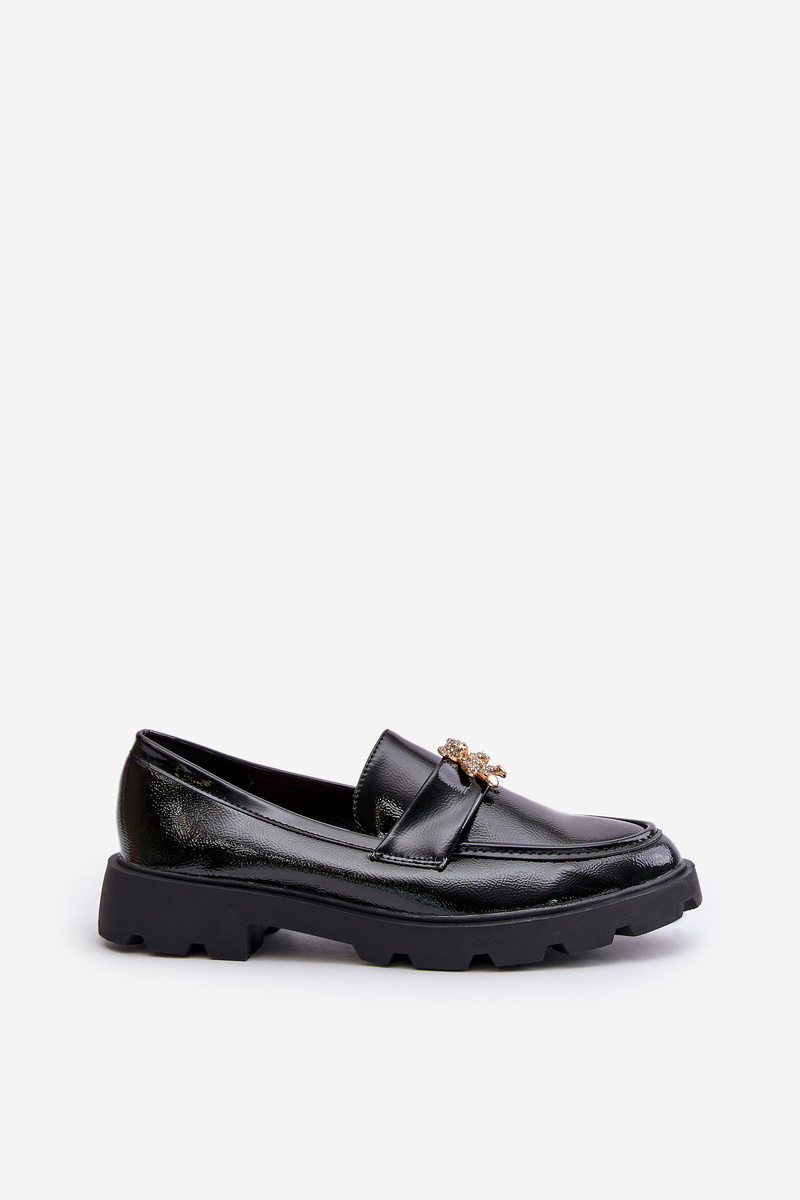Лаковані жіночі мокасини з ведмедиком Чорна Кайтра