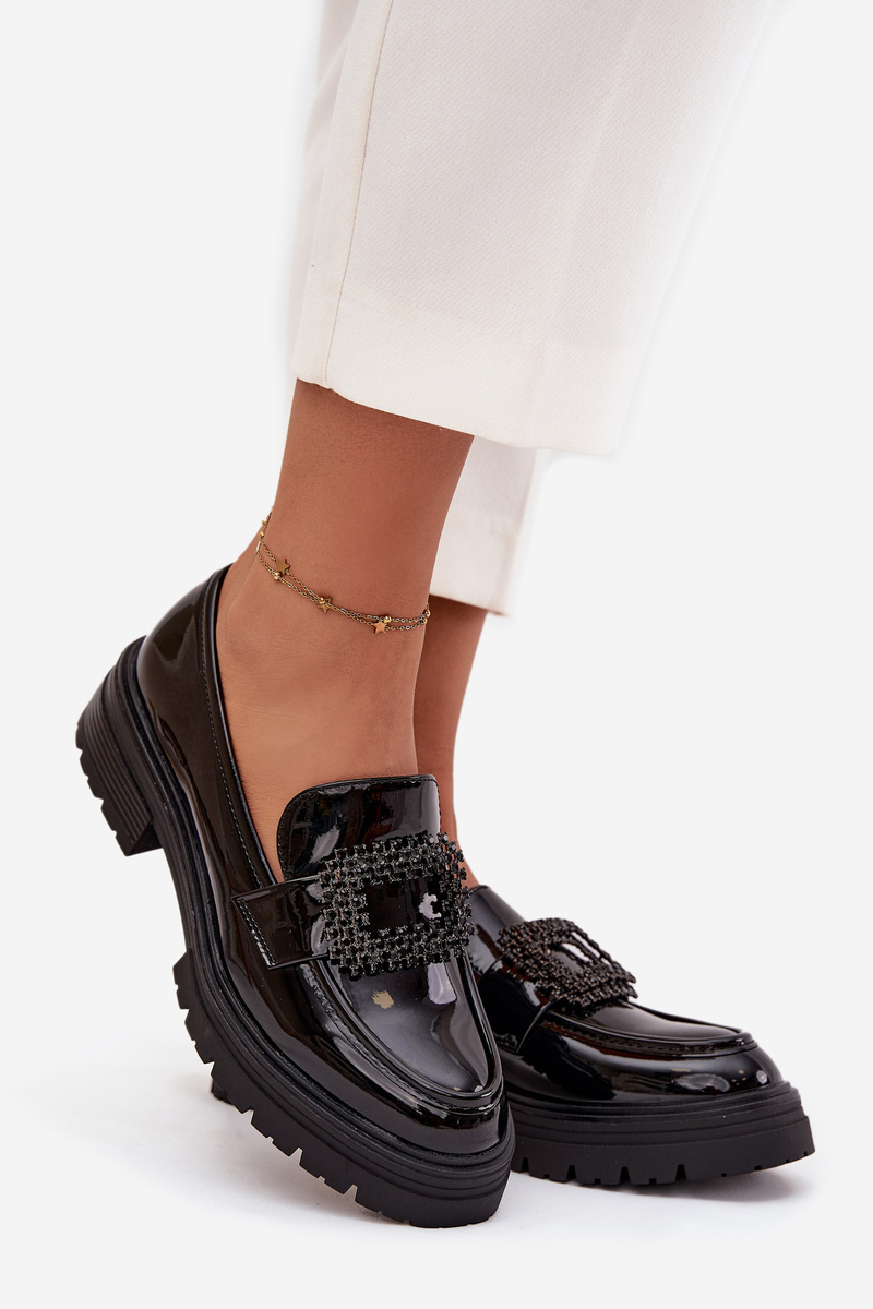 Лаковані жіночі мокасини з оздоблювальною пряжкою Чорні Luvianne