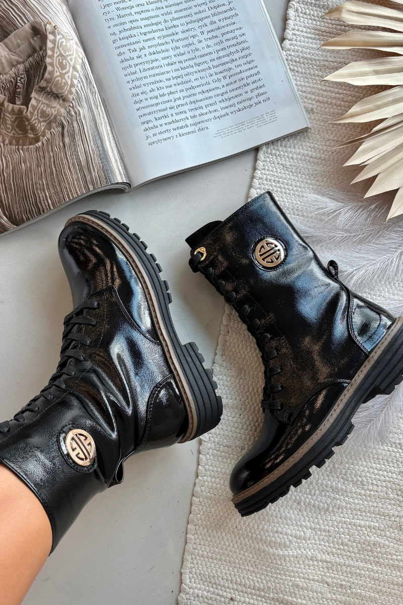 Лаковані жіночі робочі чоботи з золотим деталлю утеплені чорні Dorialine