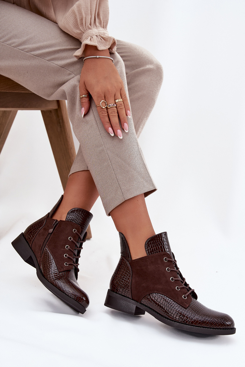 Лаковані жіночі черевики з декоративним тисненням теплі Vinceza 16477 коричневі
