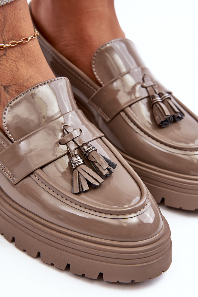 Лаковані лофери з бахромою темно-бежевого кольору Velenase