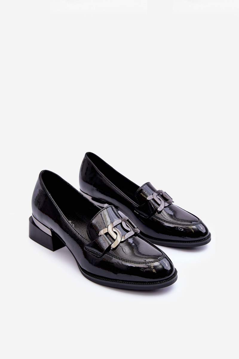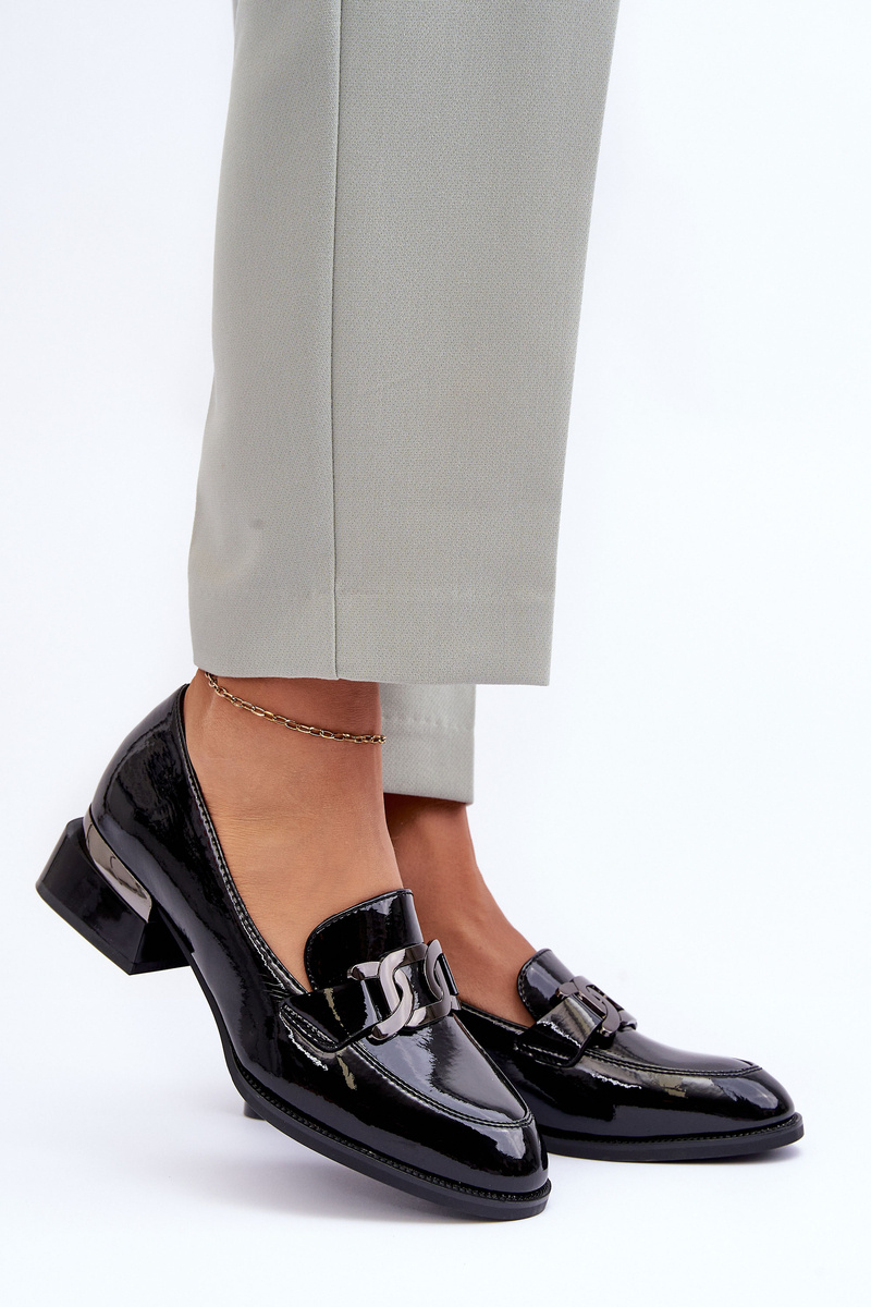 Лаковані лофери мокасини на підборах Чорні Sakina