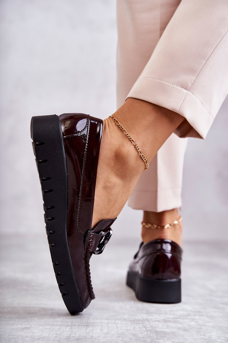Лаковані лофери на платформі бордового кольору Kjersti