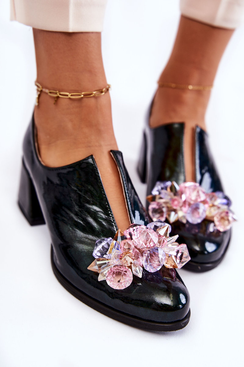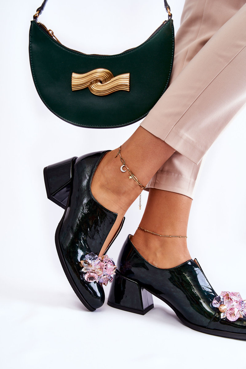 Лаковані мозаїчні туфлі з прозорим декором Green Delaver