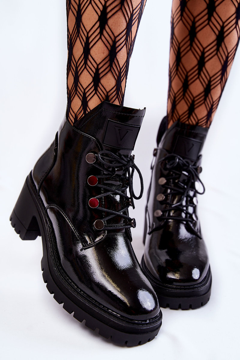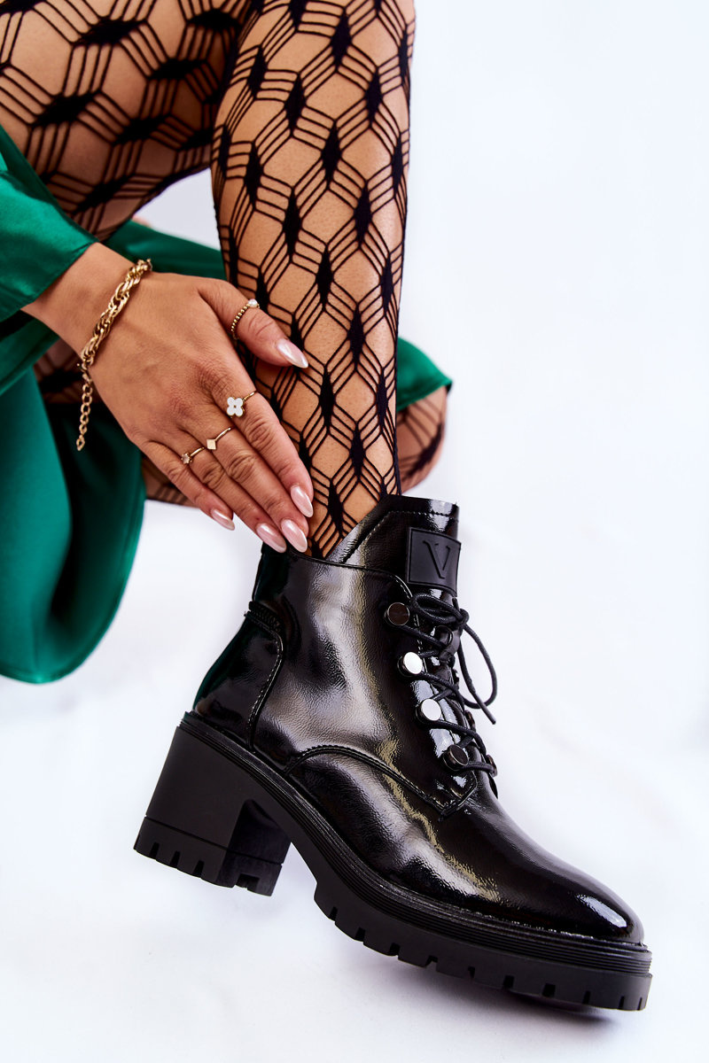 Лаковані теплі черевики на шнурівці Black Ragnhild
