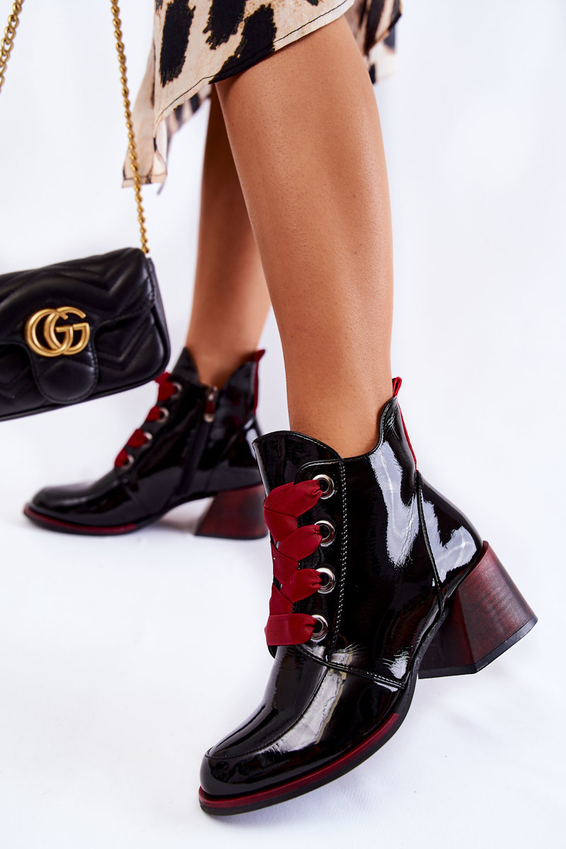Лаковані теплі черевики на шнурівці Black Tove