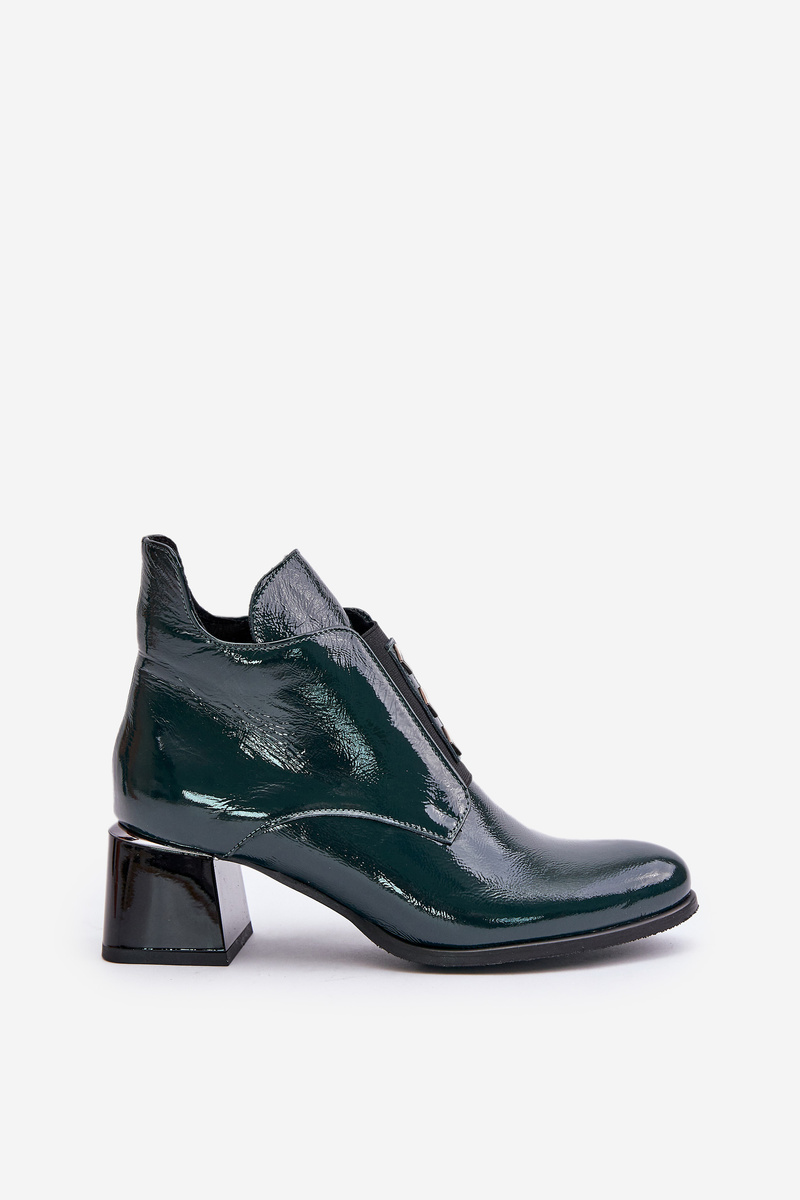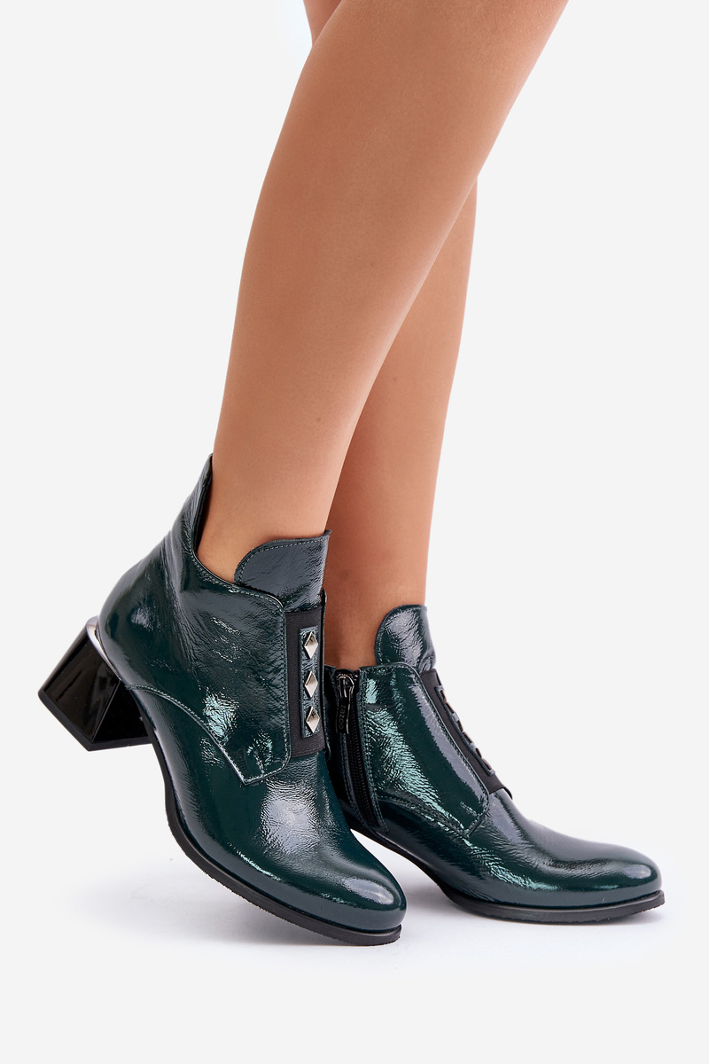 Лаковані чоботи на блоку Теплі темно-зелені Zazoo
