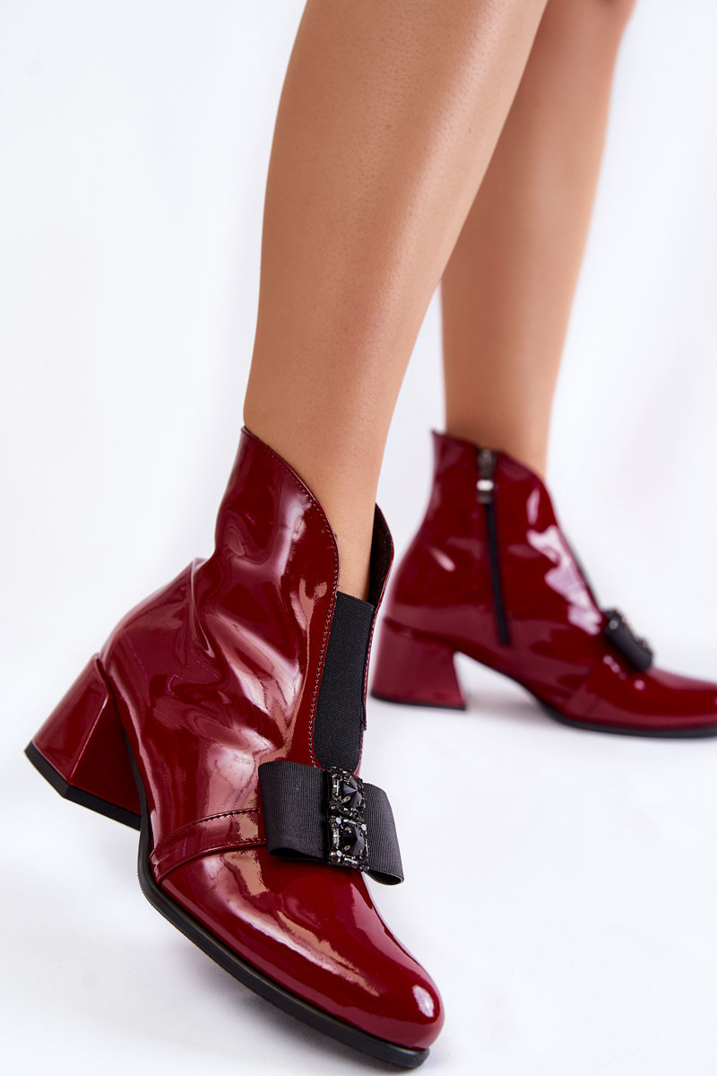 Лаковані чоботи на високих підборах з декоративним бантом Бордові Hallie