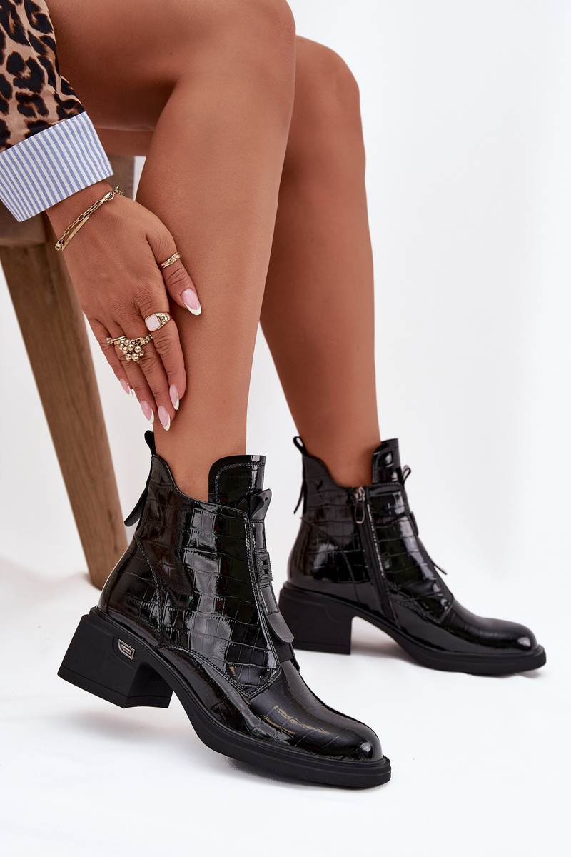 Лаковані шкіряні жіночі ботильйони з тисненням на блок Чорний Lorenza