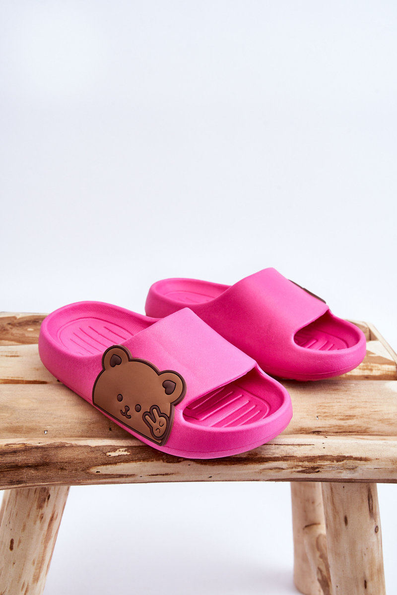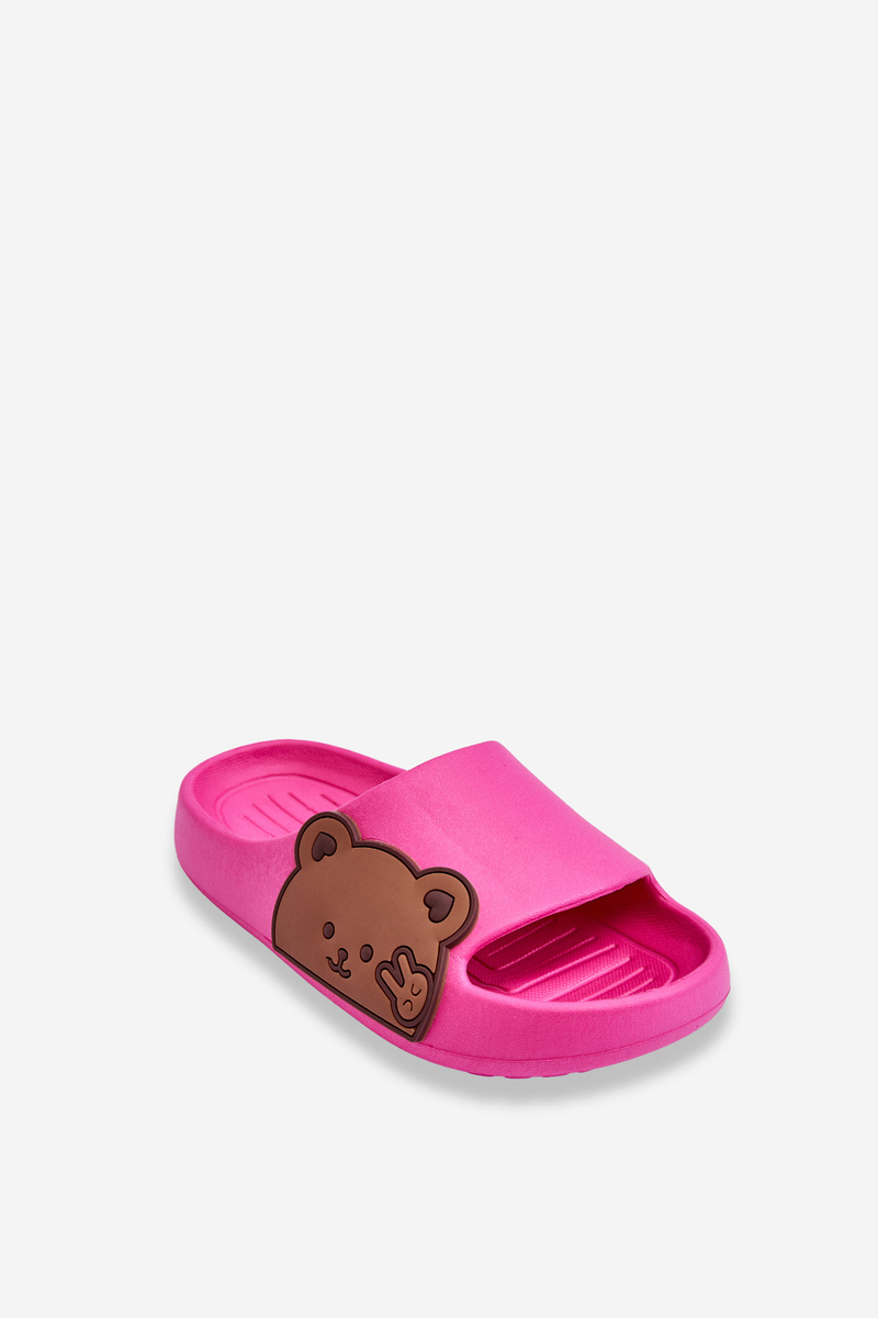 Дитячі тапочки з мотивом у вигляді ведмедика збоку верху. Ці шльопанці виготовлені з спіненого матеріалу. Ця модель має відкритий закруглений ніс. Шльопанці розмістили на масивній платформі. Класична модель, сліпони та надзвичайно легка. Ваша дитина точно буде задоволена цими капцями! Обираючи розмір, орієнтуйтеся на таблицю розмірів.