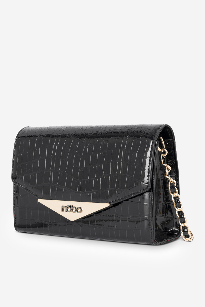 Сумка-клатч NOBO — ідеальний приклад елегантності в поєднанні з практичністю. Декоративний золотий логотип бренду, розміщений спереду, додає елегантний акцент, підкреслюючи унікальність цього клатча. Цю модель можна носити в руці або на плечі. Ремінець обплетений золотим ланцюжком. Додатково всередині є одна кишеня на блискавці.