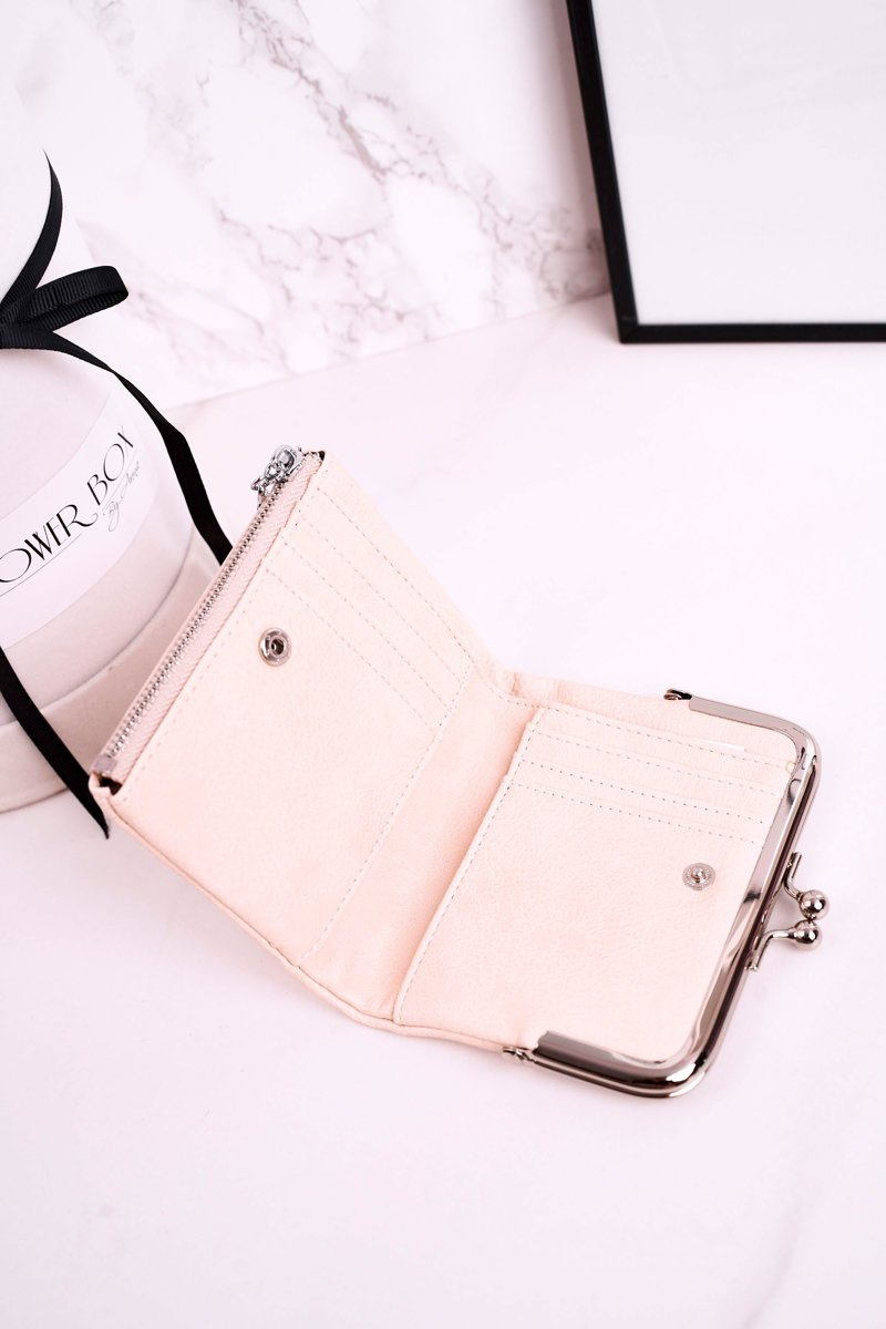 Маленький жіночий гаманець застібається на гачок бежевого кольору