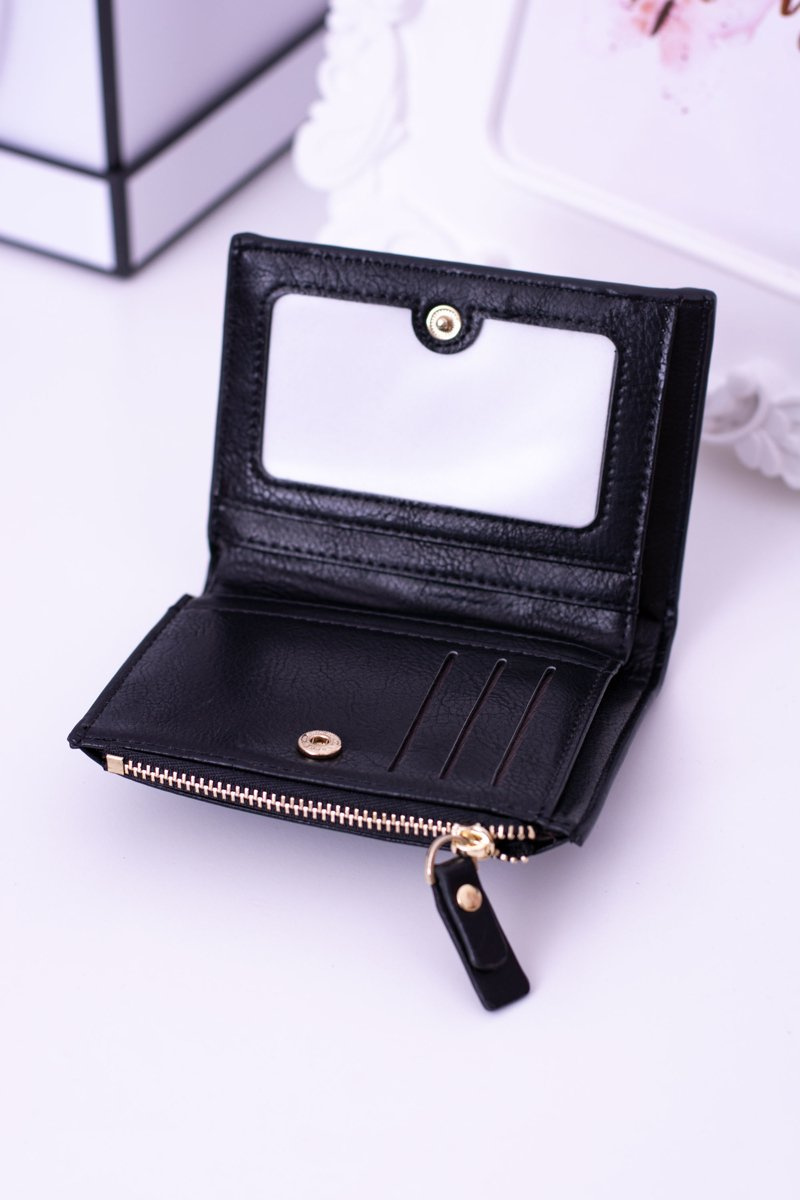 Маленький чорний жіночий гаманець Gold Lock