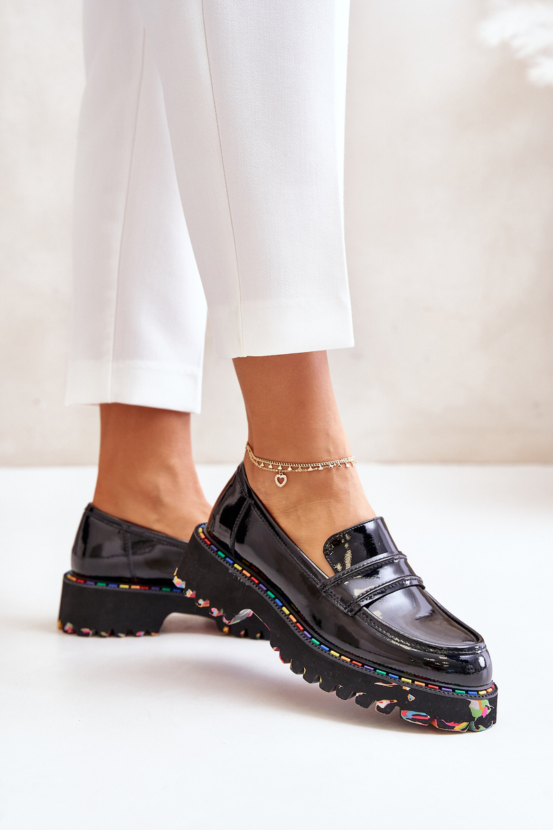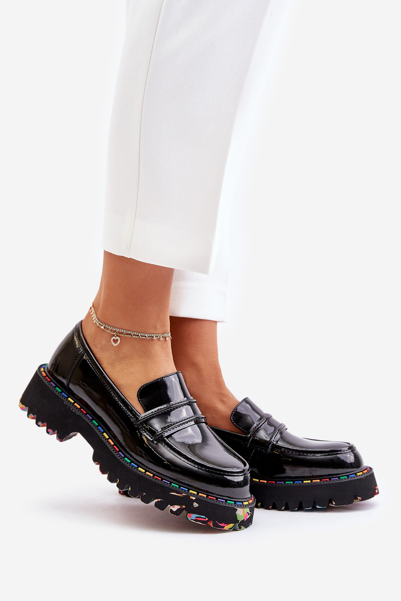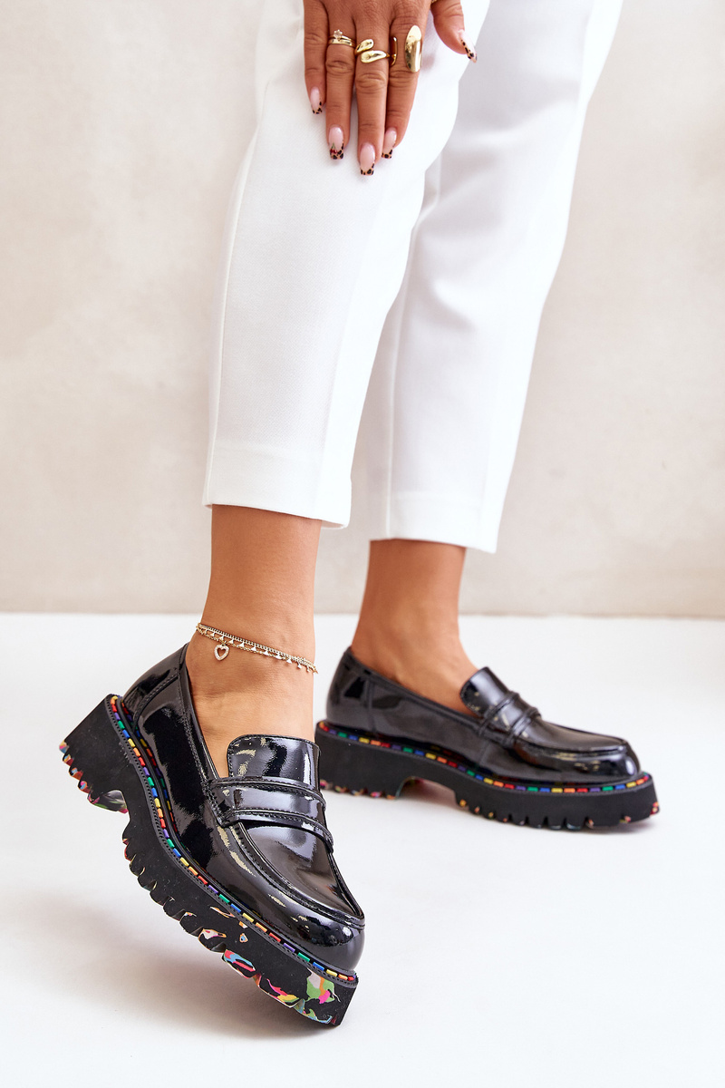 Масивні жіночі лаковані мокасини Black Artiker 55C0489