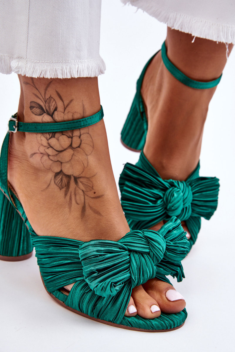 Унікальні босоніжки на підборах у вигляді стійкої стійки. Це взуття має бант спереду, що додає цьому взуттю елегантності. М'яка устілка з екошкіри забезпечить комфорт під час використання. Ця модель ідеально підходить для будь-яких важливих урочистих заходів. Ця модель вам точно сподобається! Обираючи розмір, орієнтуйтеся на таблицю розмірів.