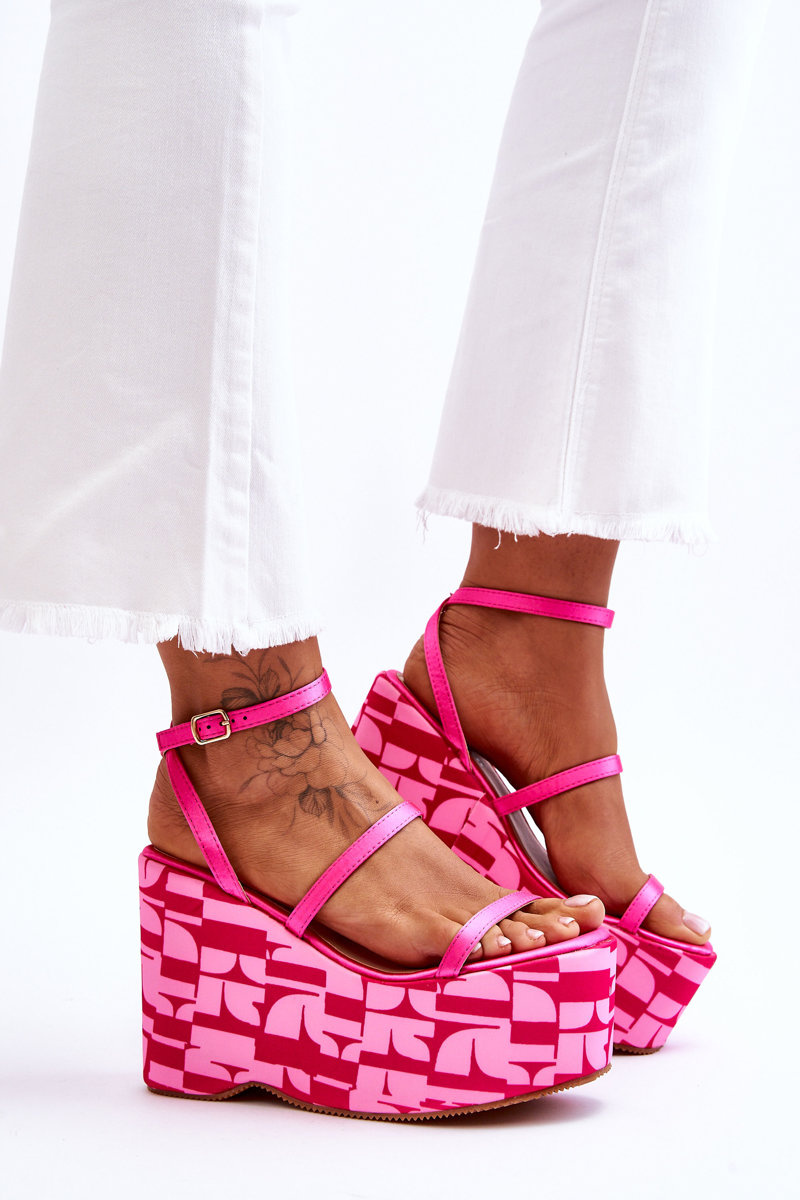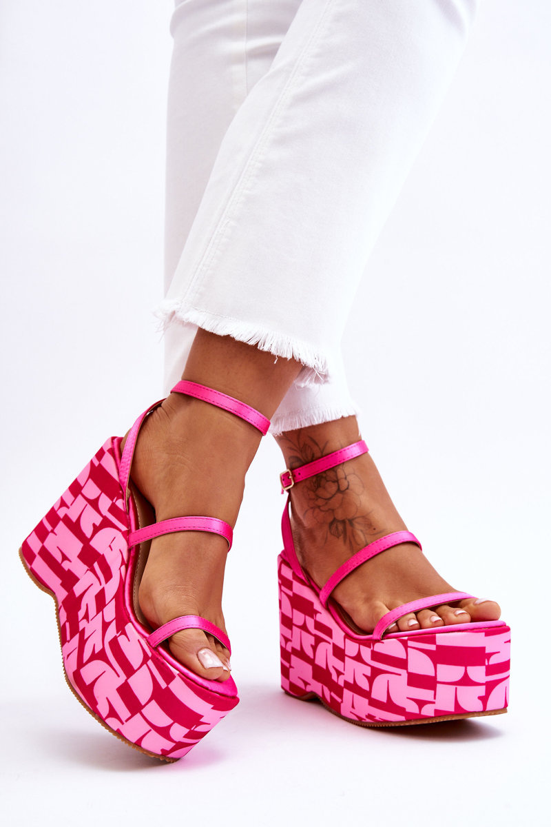 Модні босоніжки на танкетці з візерунками кольору фуксії Claria