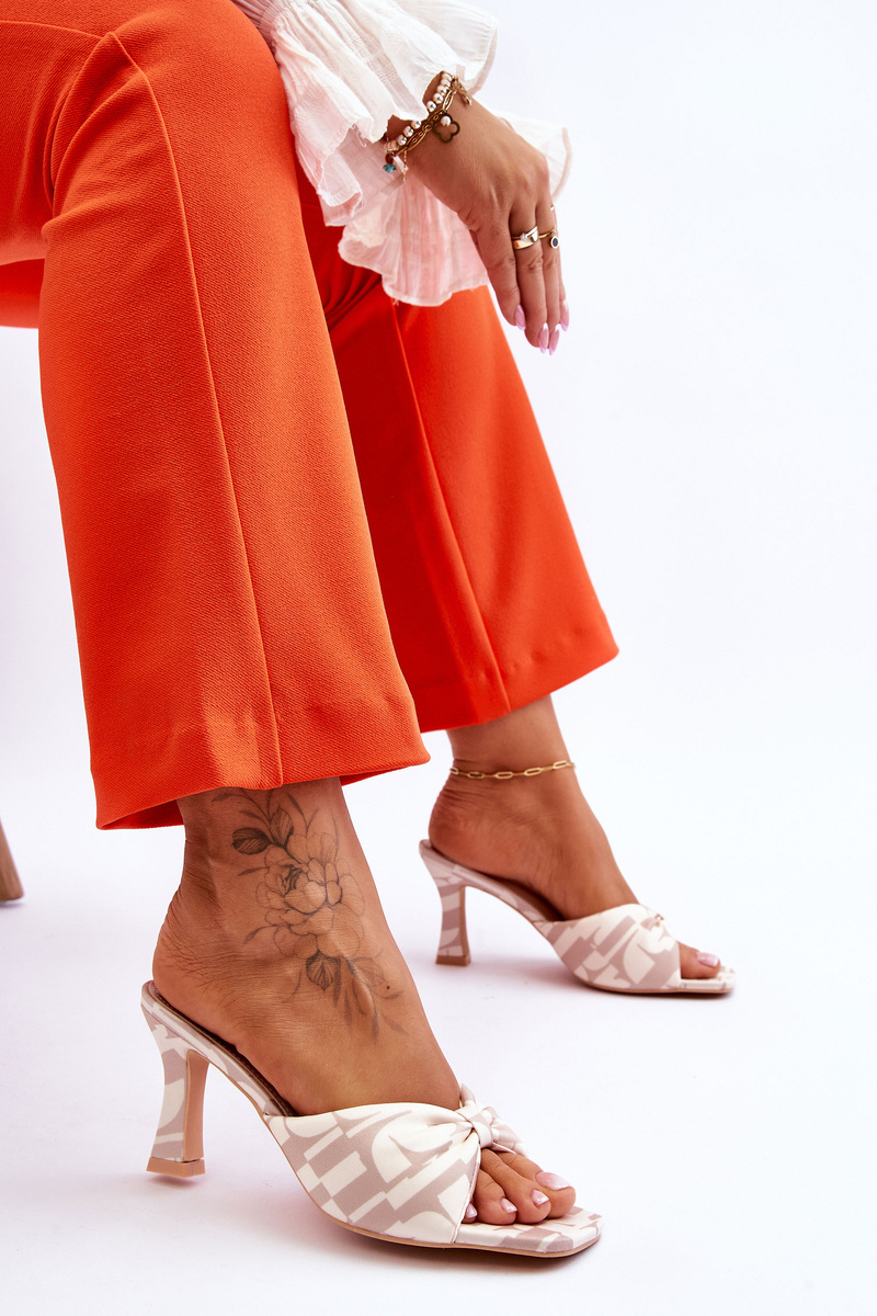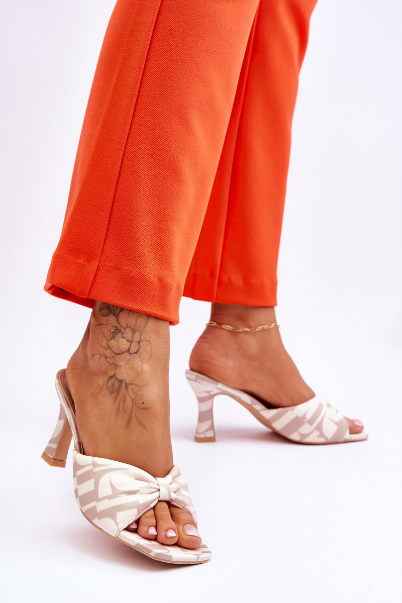 Зручні жіночі тапочки виготовлені з текстильного матеріалу з цікавим принтом. Спереду вони мають м’який бант. Устілка виконана з екошкіри і надзвичайно зручна у використанні. Ці туфлі були встановлені на невисокому каблуці у вигляді більш широкої шпильки. Ця модель підкреслить багато стилів! Ви повинні мати ці шльопанці! Обираючи розмір, зверніться до таблиці розмірів.