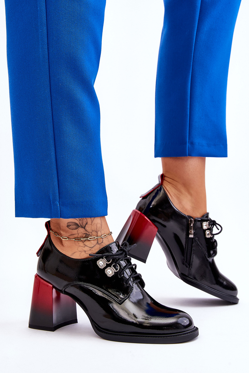 Модні туфлі з еко шкіри з щиколоткою. Модель зі шнурівкою та верхньою частиною на блискавці. М'яка устілка з натуральної шкіри комфортна під час використання. Масивний каблук у вигляді стійки забезпечить стійкість на кожному кроці. Взуття має посилений каблук. Модель, яка порадує багатьох любителів модного взуття! Обираючи розмір, орієнтуйтеся на таблицю розмірів.