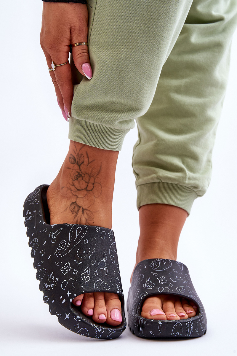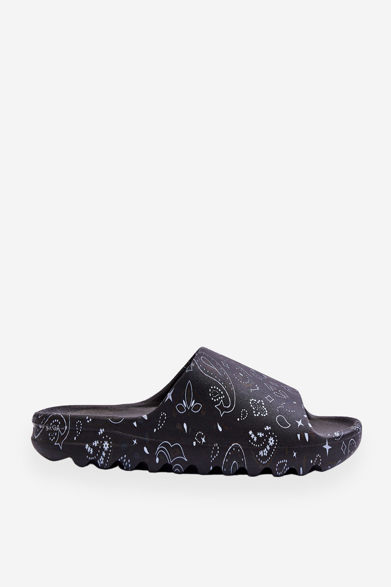 Ці шльопанці повинні бути у вашому гардеробі! Шльопанці повністю виготовлені з пластику, що імітує гуму. Модель має модний широкий пояс. На зовнішній стороні взуття є відбиток з цікавими візерунками. Тапочки ідеально підходять для повсякденного використання. Чудово підійдуть замість тапочок або як шльопанці для басейну. Надзвичайно зручна та комфортна модель. Ви просто повинні їх мати! Обираючи розмір, зверніться до таблиці розмірів.